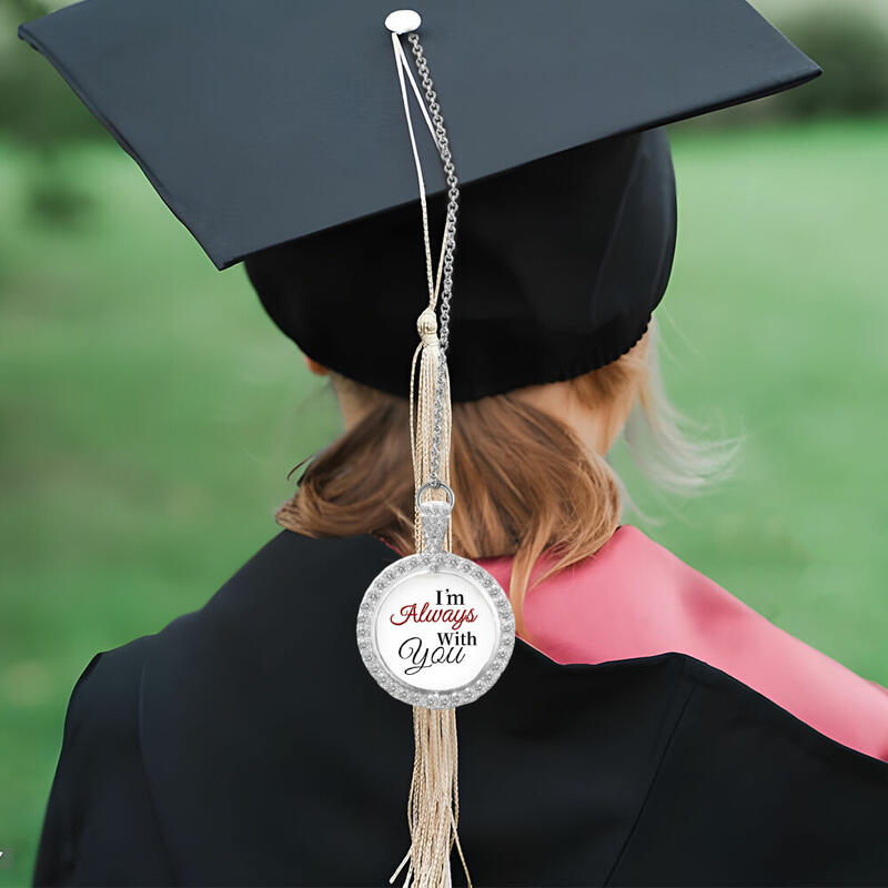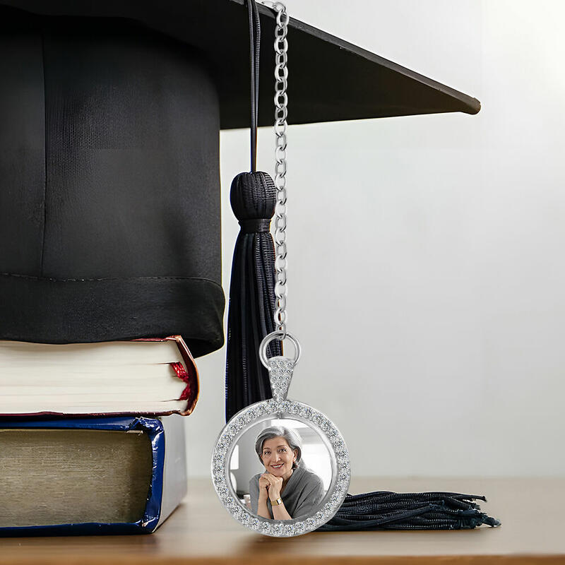 As your child prepares to walk across the stage to receive their diploma, honor this momentous achievement by gifting them this graduation tassel charm. Carefully crafted with attention to detail, this charm pays tribute to a loved one with a custom picture keepsake gift. Add a special touch by personalizing the gift with a photo, name, or a sweet message. A personalized tassel photo charm will be a heartwarming and practical gift for anyone during the upcoming graduation season. Not only is it a graduation cap charm with a picture and a short message, it's also a sweet reminder that your loved one isn't far away, but he or she is always with you in different ways.