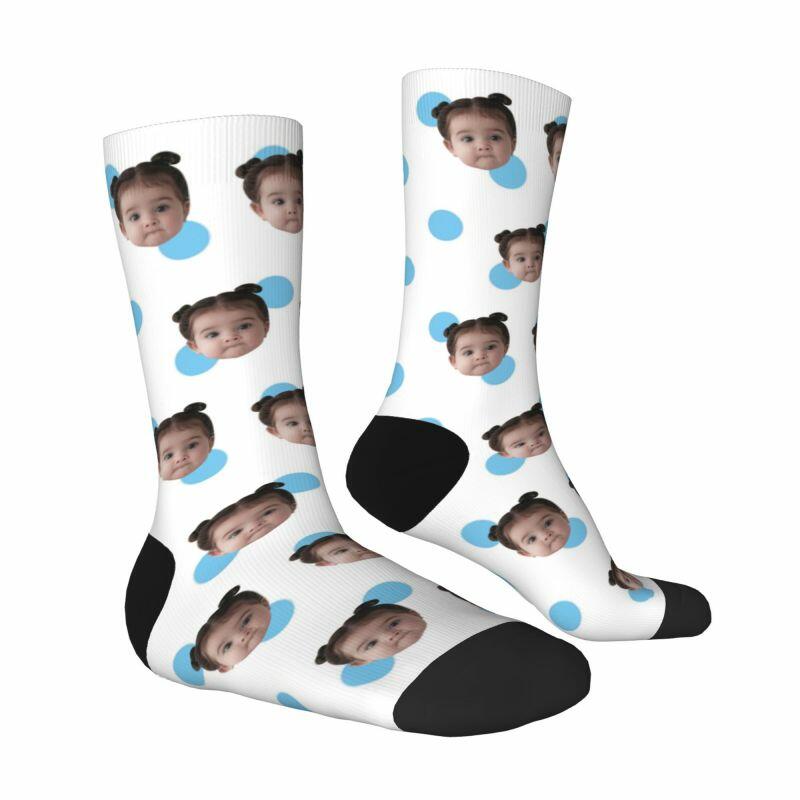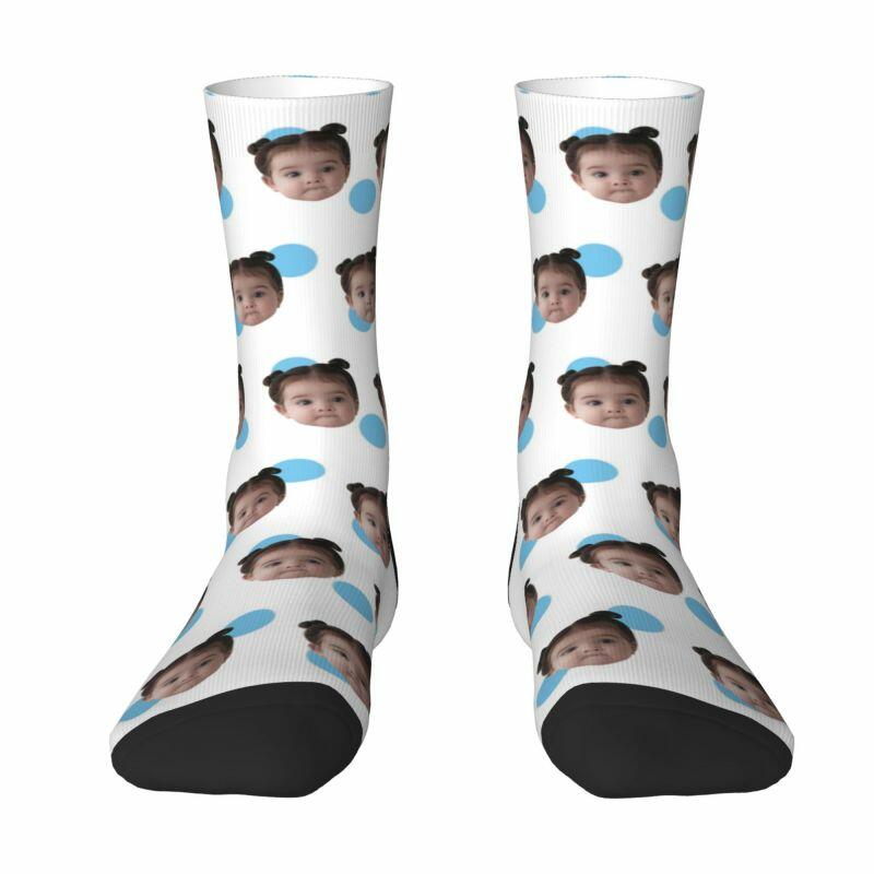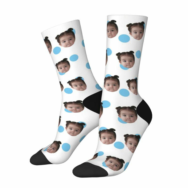 Customized Photo Socks Breathable Material with Blue Polka Dots for Friends