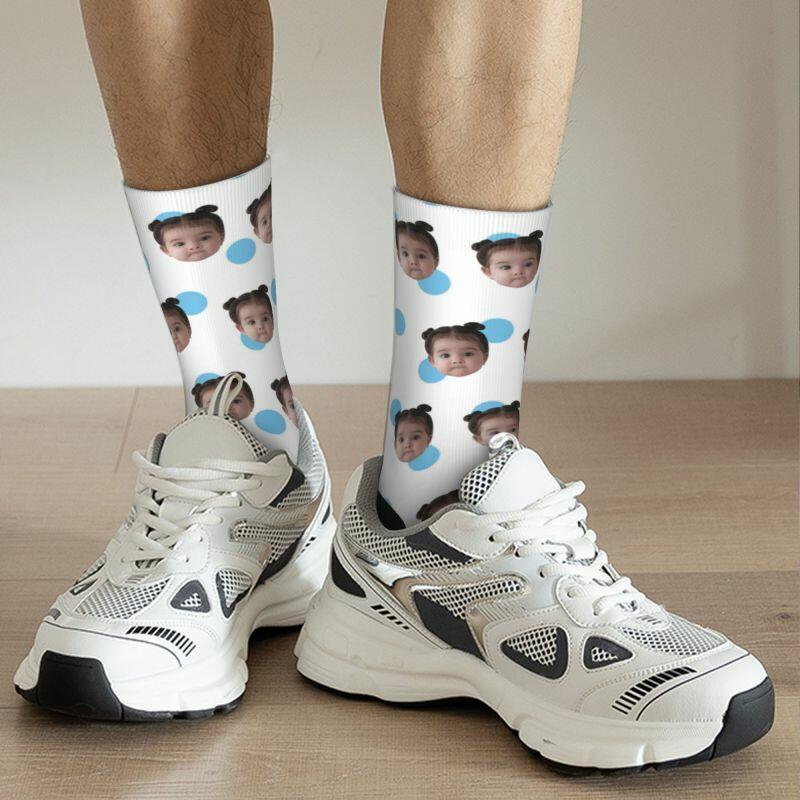 Our playful and whimsical polka dot patterned socks, designed to bring joy and laughter to both kids and adults alike. These socks feature a delightful polka dot design that can be personalized with adorable pictures, adding an extra touch of charm and capturing the essence of life.