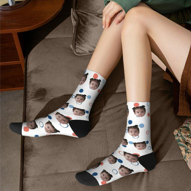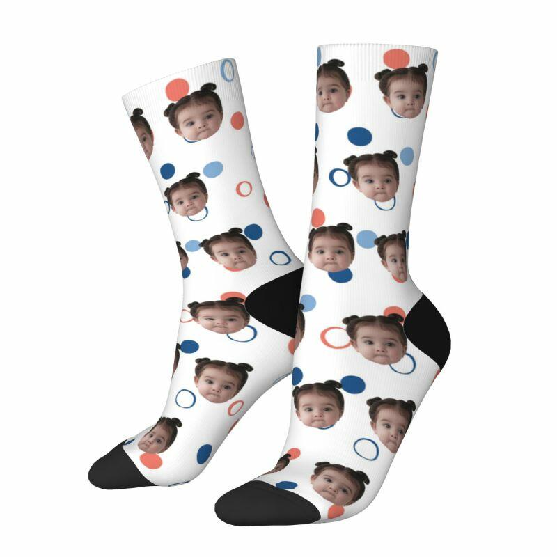 Our playful and whimsical polka dot patterned socks, designed to bring joy and laughter to both kids and adults alike. These socks feature a delightful polka dot design that can be personalized with adorable pictures, adding an extra touch of charm and capturing the essence of life.