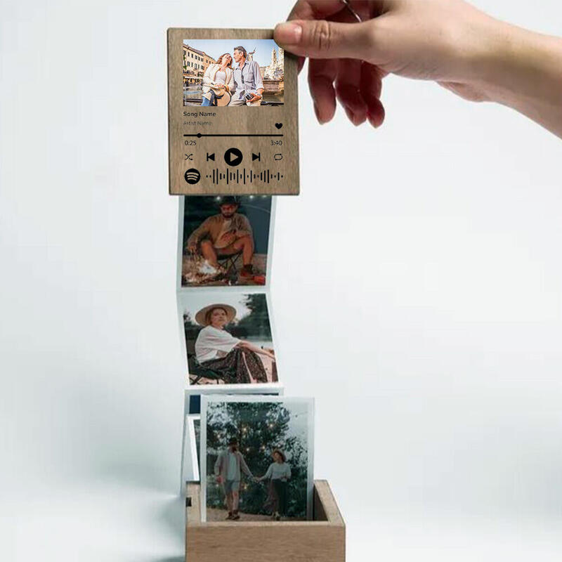 Customized Wooden Photo Box Spotify "Love Memories" Wedding Anniversary Album Gift for Couples