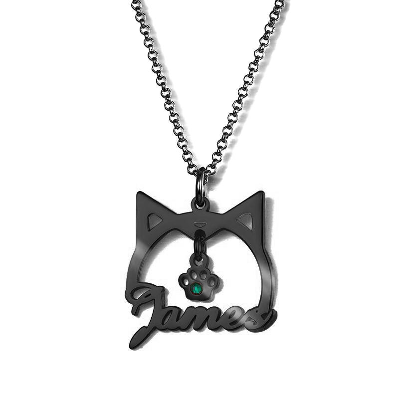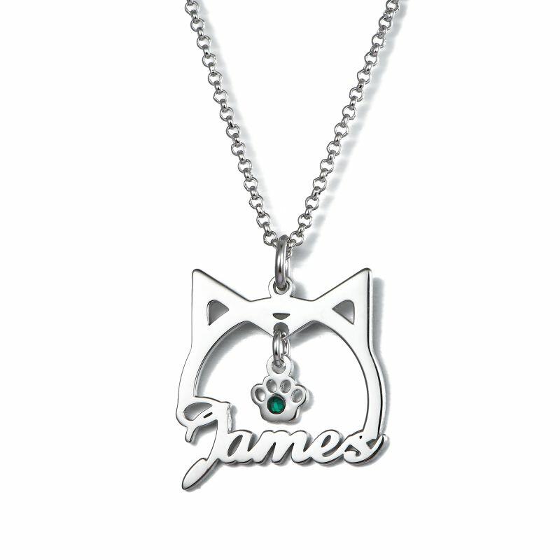 Cute Cat Shape Name Necklace With Birthstone