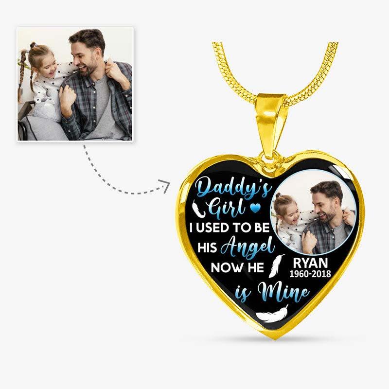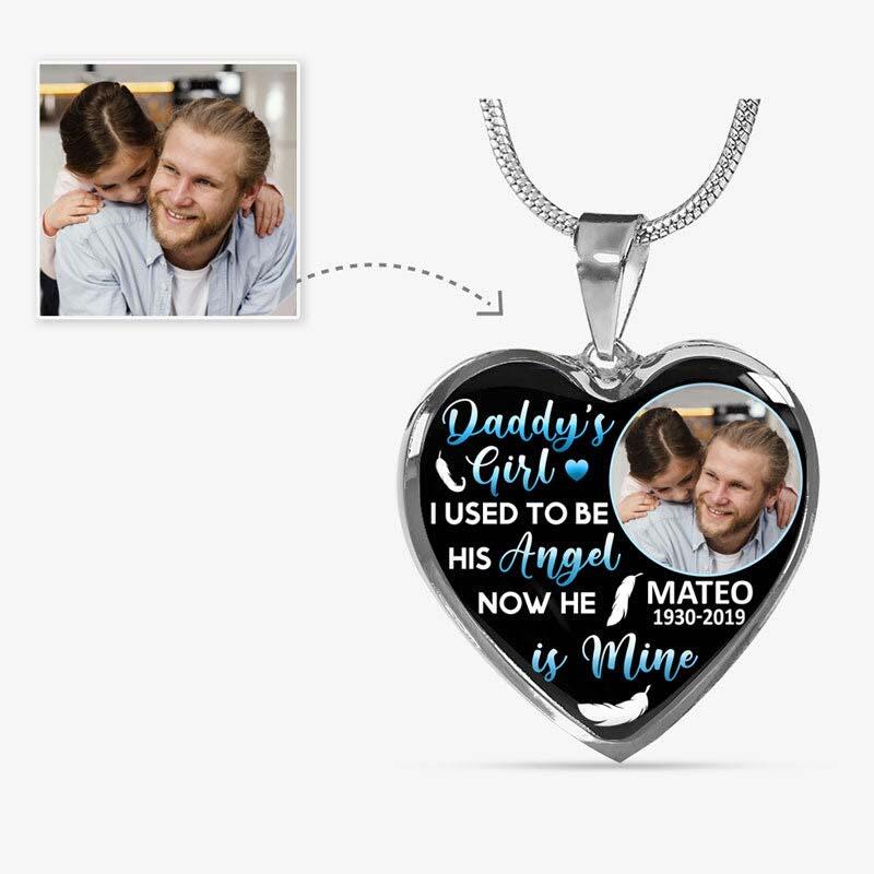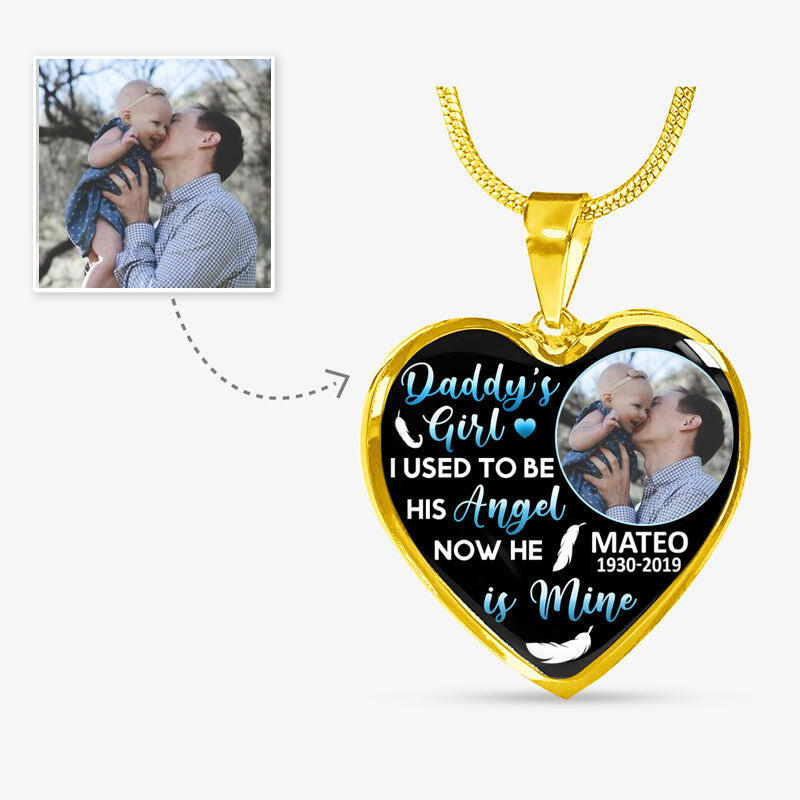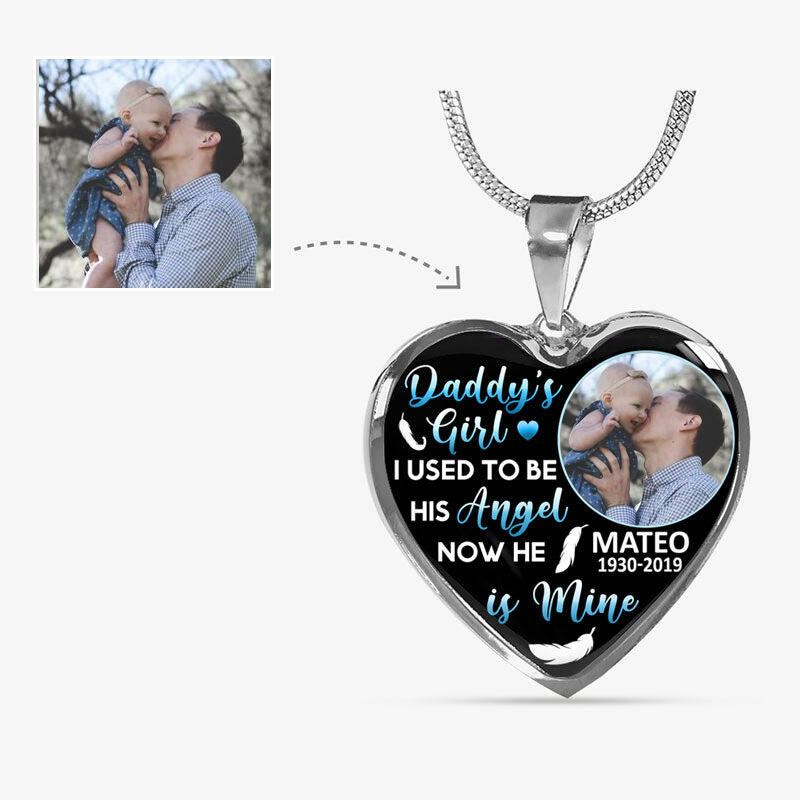 "Daddy's Girl I Used To Be His Angel, Now He Is Mine" Unique Memorial Custom Photo Necklace