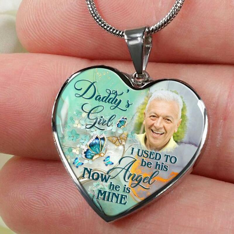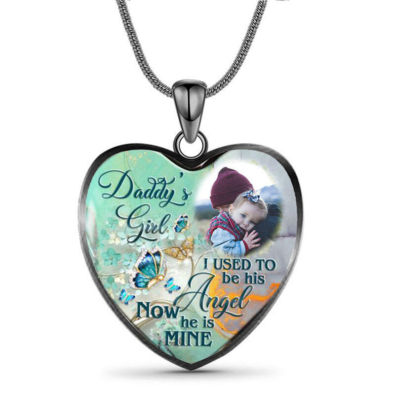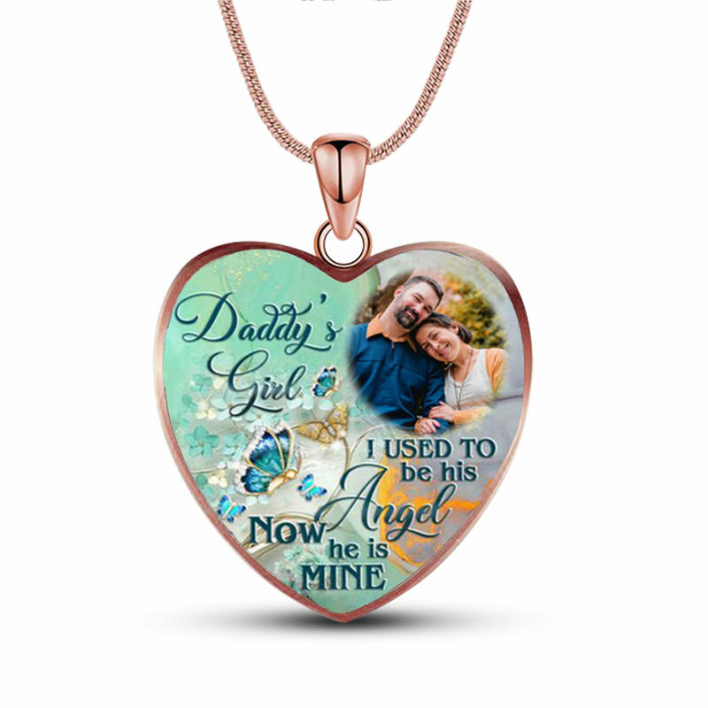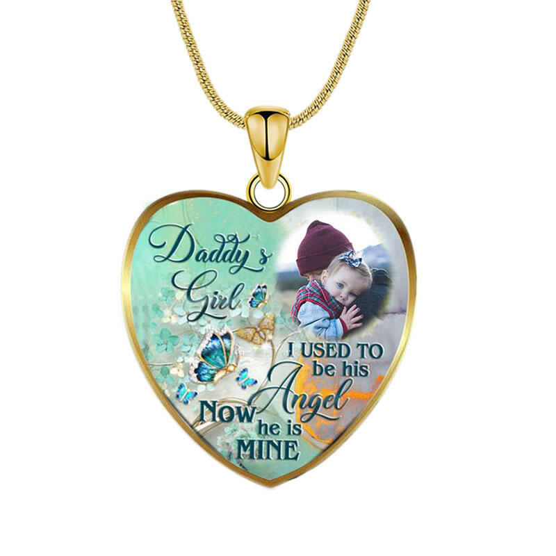 DADDY'S GIRL I USED TO BE HIS ANGEL Personalized Memorial Heart Photo Necklace