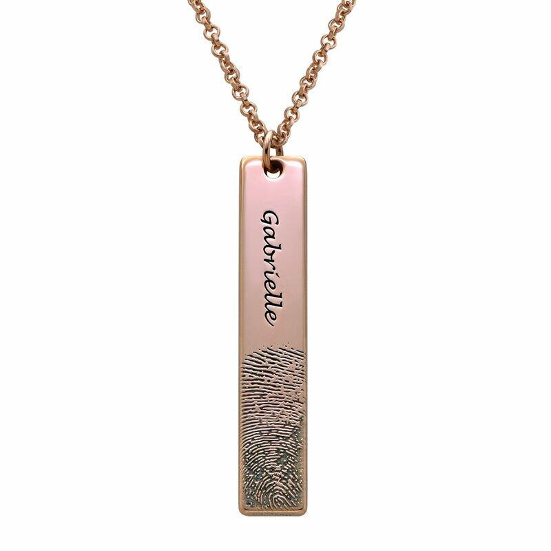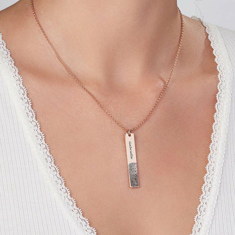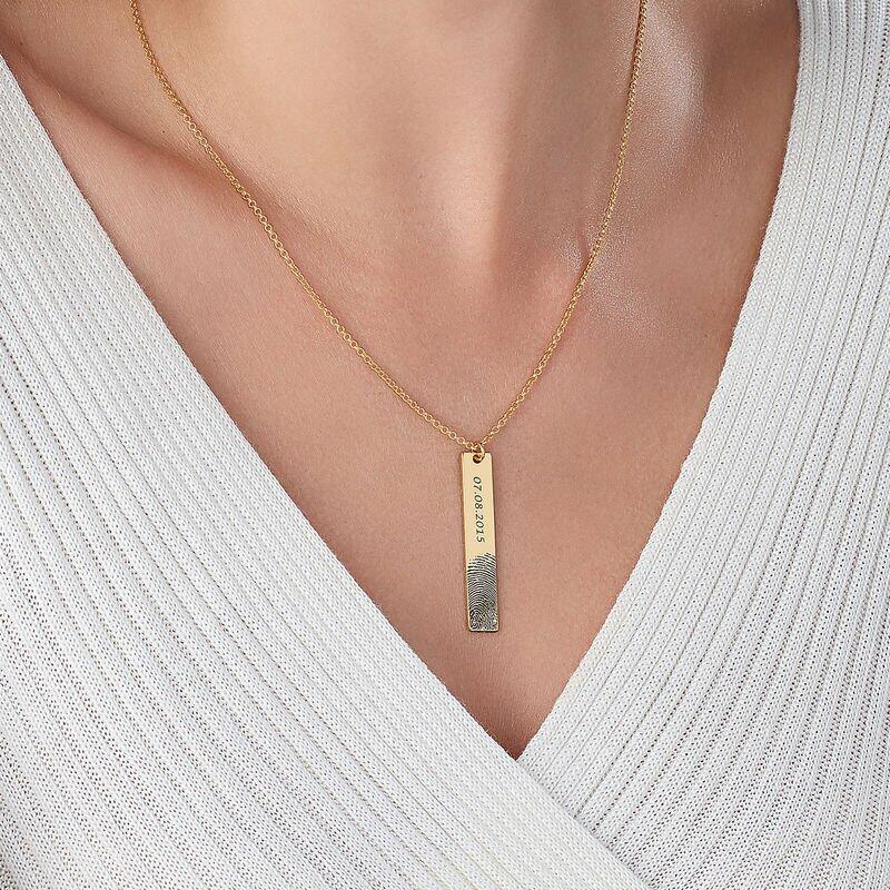 Fingerprint Engraved Vertical Bar Necklace Fingerprint Jewelry