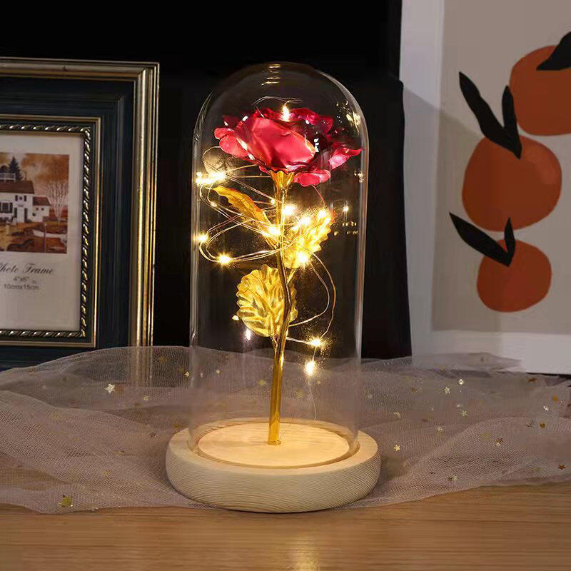 Galaxy Rose Glass Lampshade Eternal Flower Log Base Rose Flower Night Light Gift