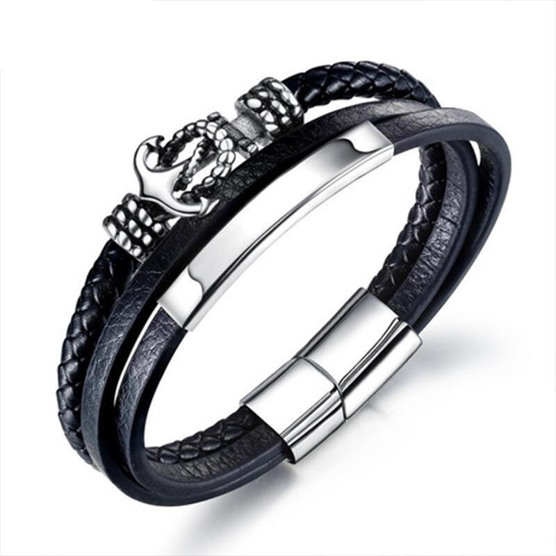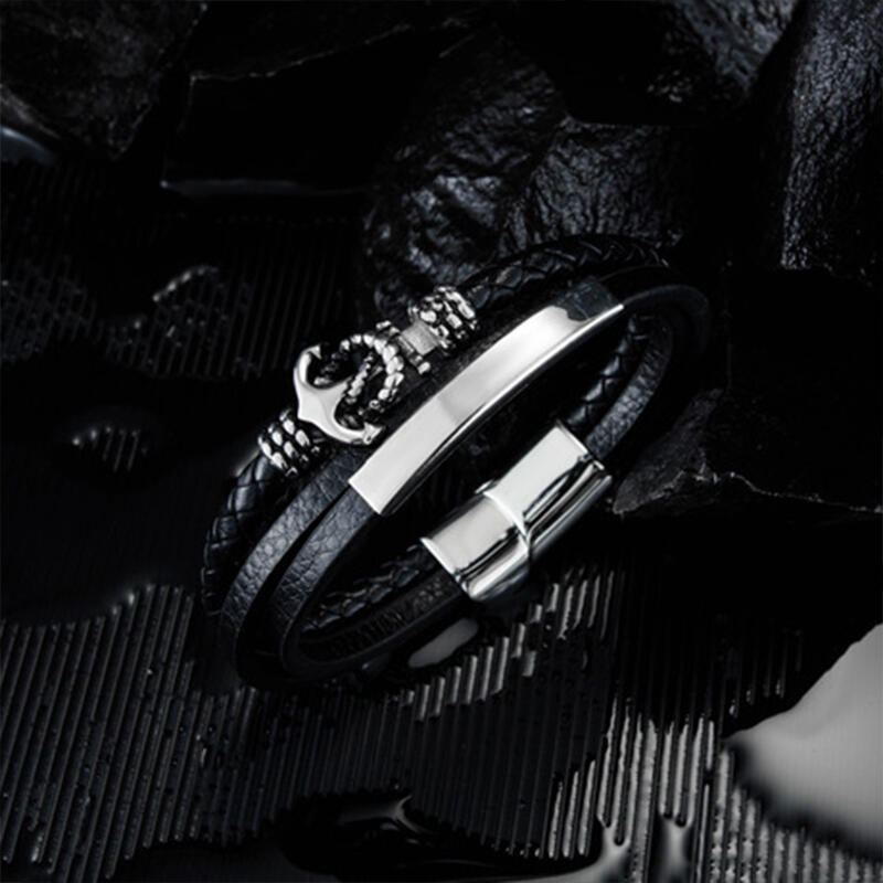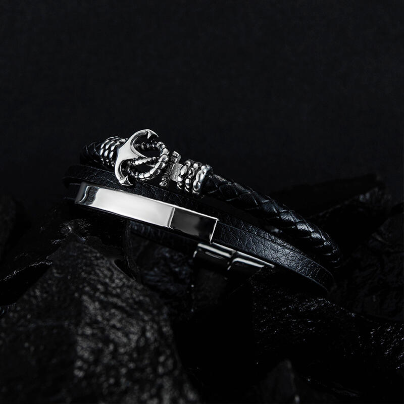 "His Lover" Personalized Anchor Bracelet For Men Stainless Steel Woven