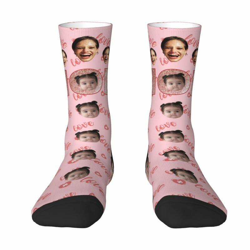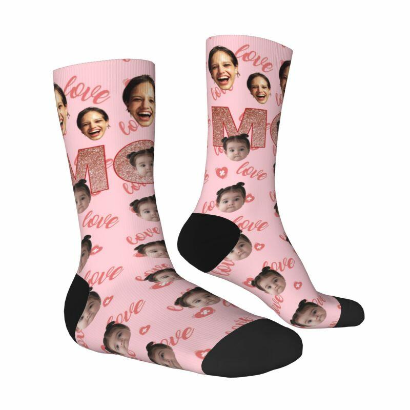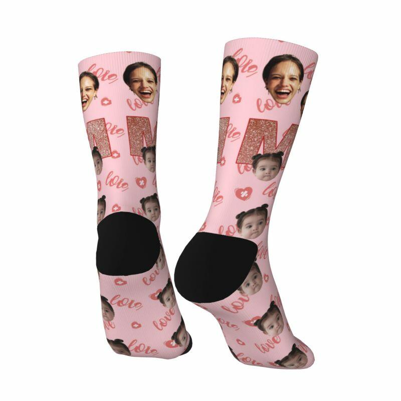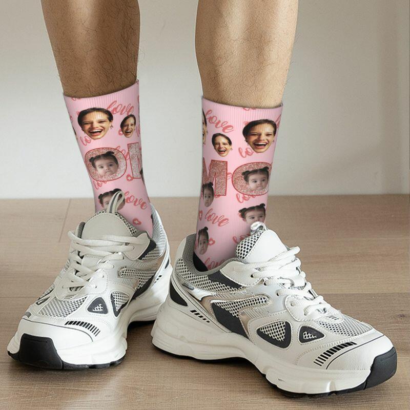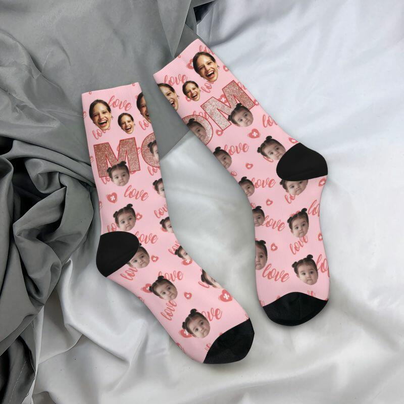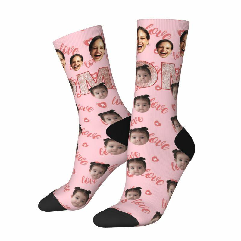 Hot Stamping "MOM" Personalized Face Socks with Baby Photo Added