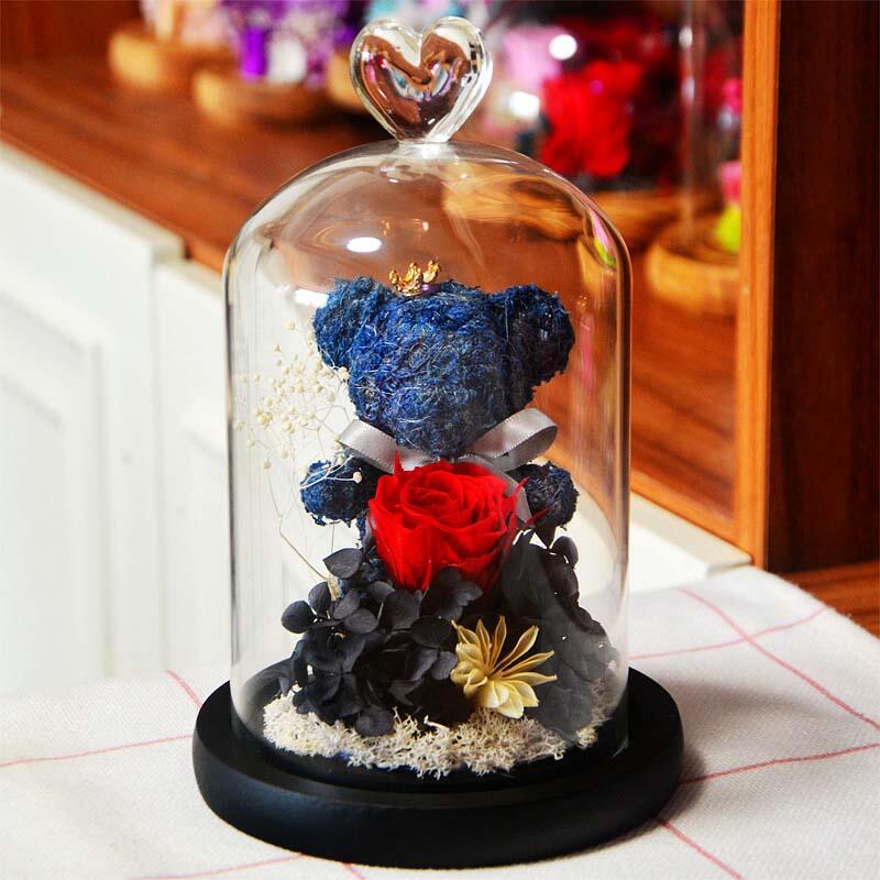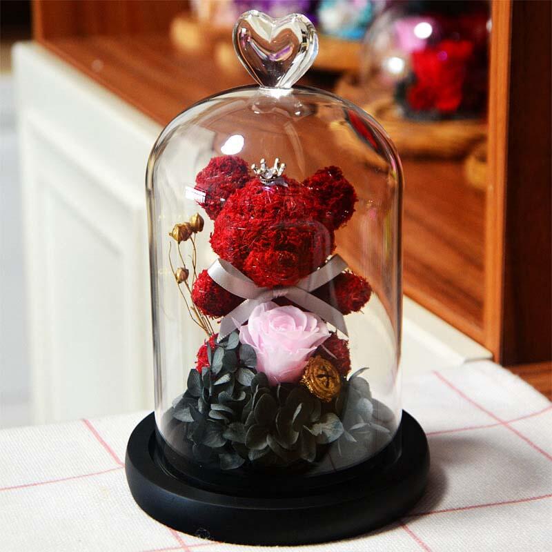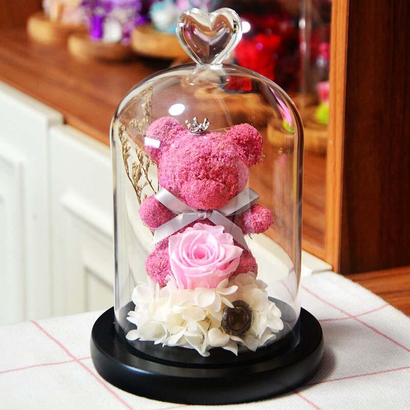 Immortal Rose Bear Glass Cover Rose Flower Valentine's Day Gift