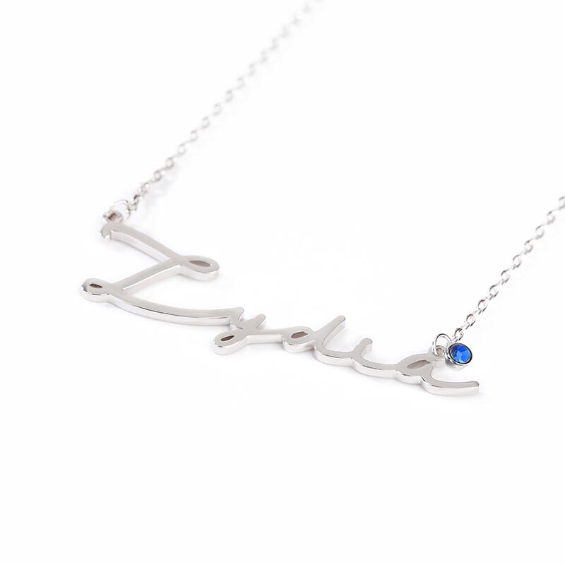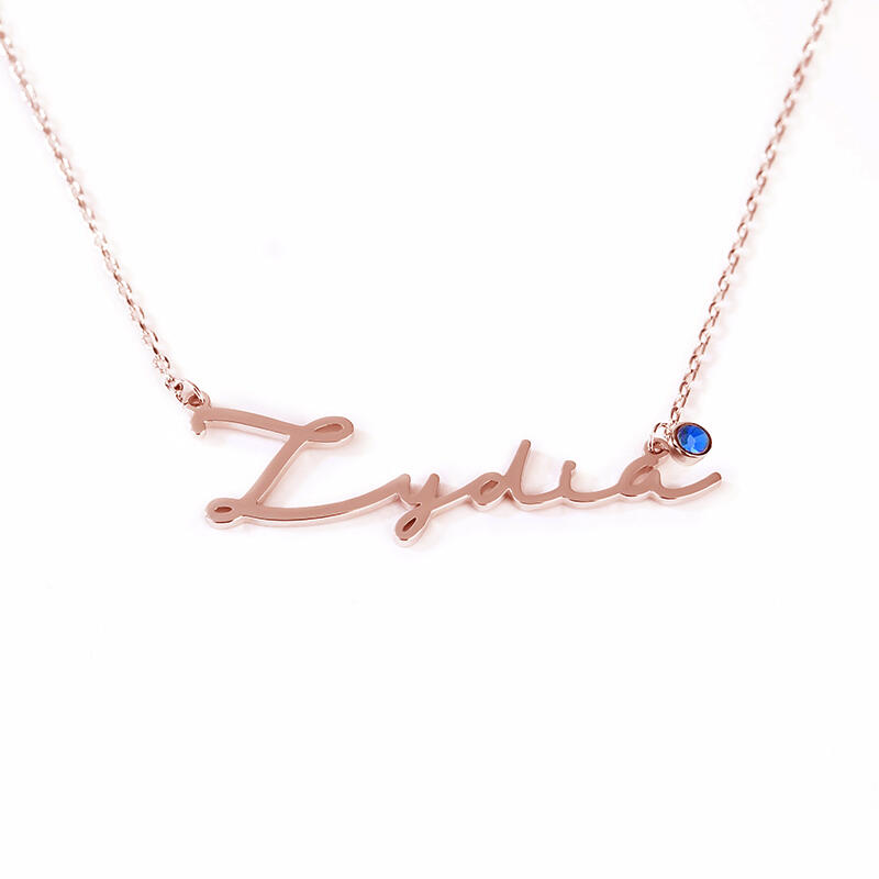 Our Name Necklace with birthstone offers lots of pretty details, starting with the name or word of your choice in a beautiful script font. A flower with birthstone lying under the name, adding just a touch of color and sparkle. It is versatile enough for everyday wear.