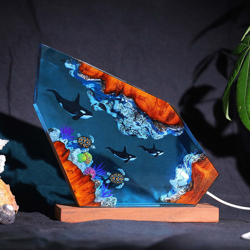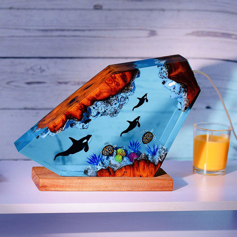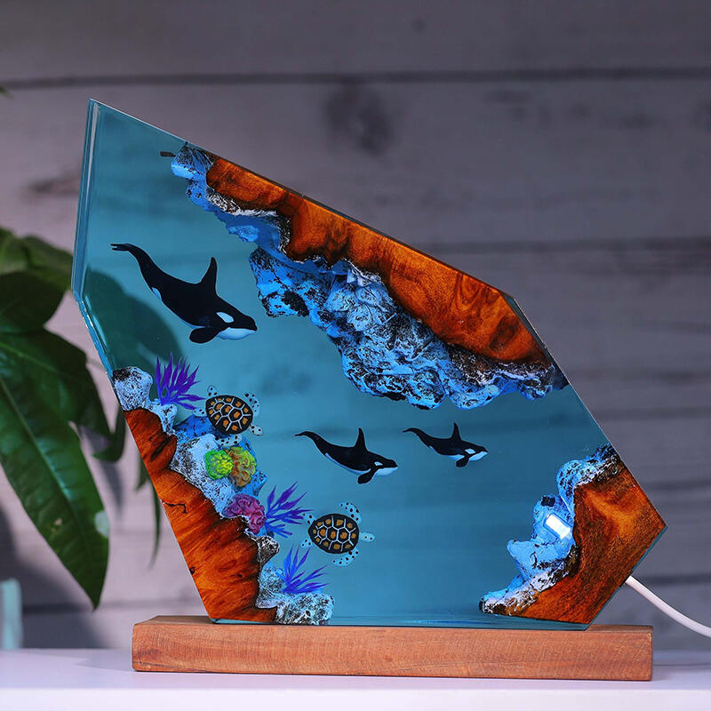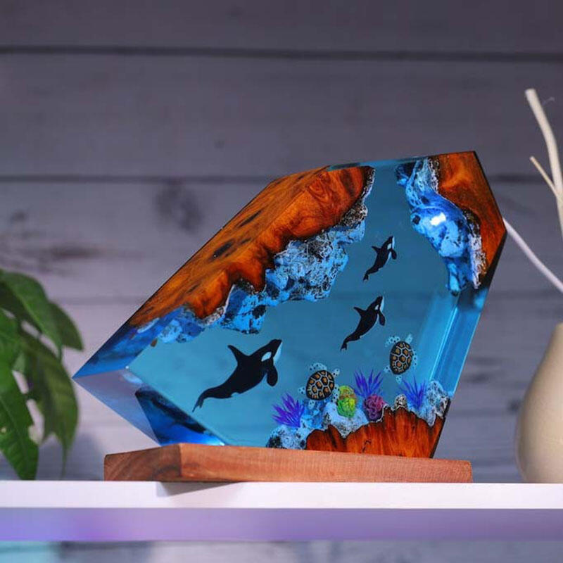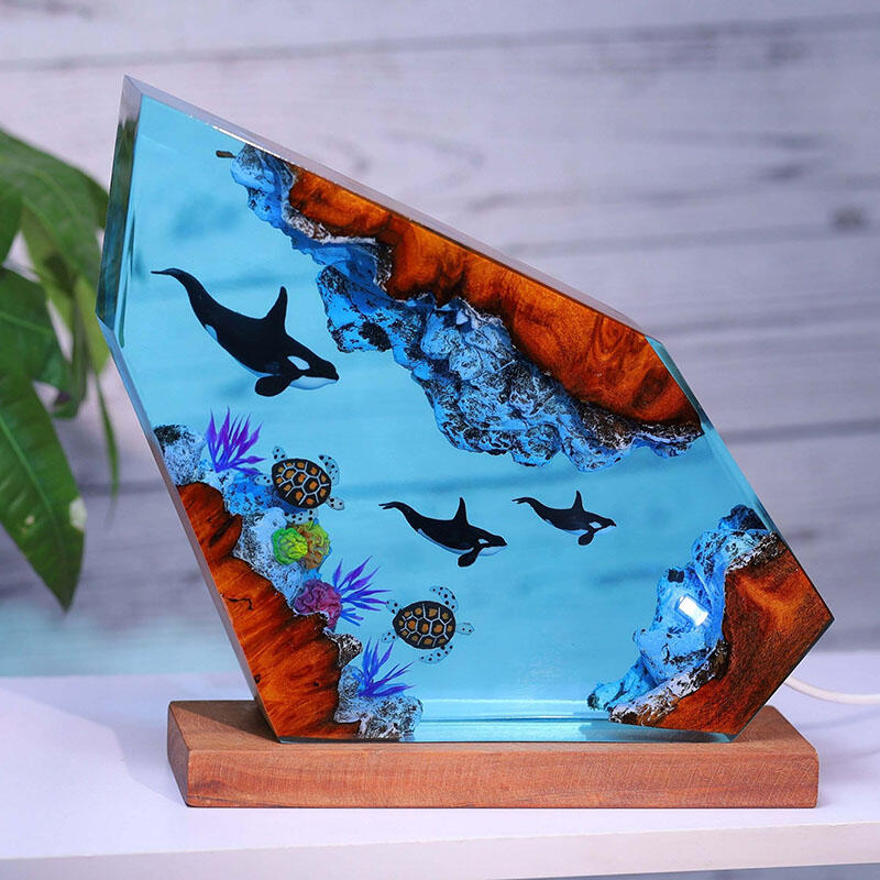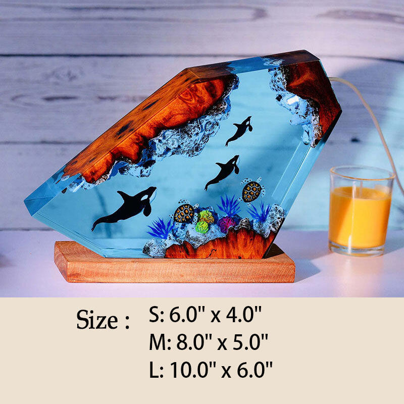 Killer Whale And Turtle Resin Wood Lamp Perfect Gift for Ocean Lover