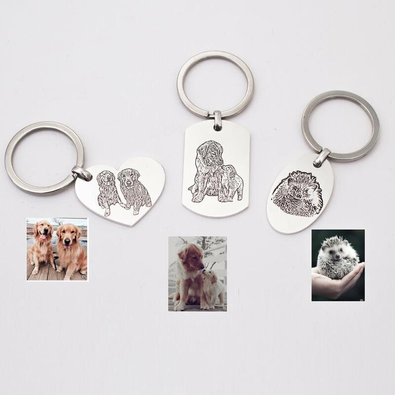 This pet keychain makes the perfect gift for that animal lover in your life! Personalize your keychain with a portrait of your pet along with their name or nickname! Choose between our unique fonts for an extra special touch. Its style makes it easy to carry with you. It is sure to be treasured for years to come.