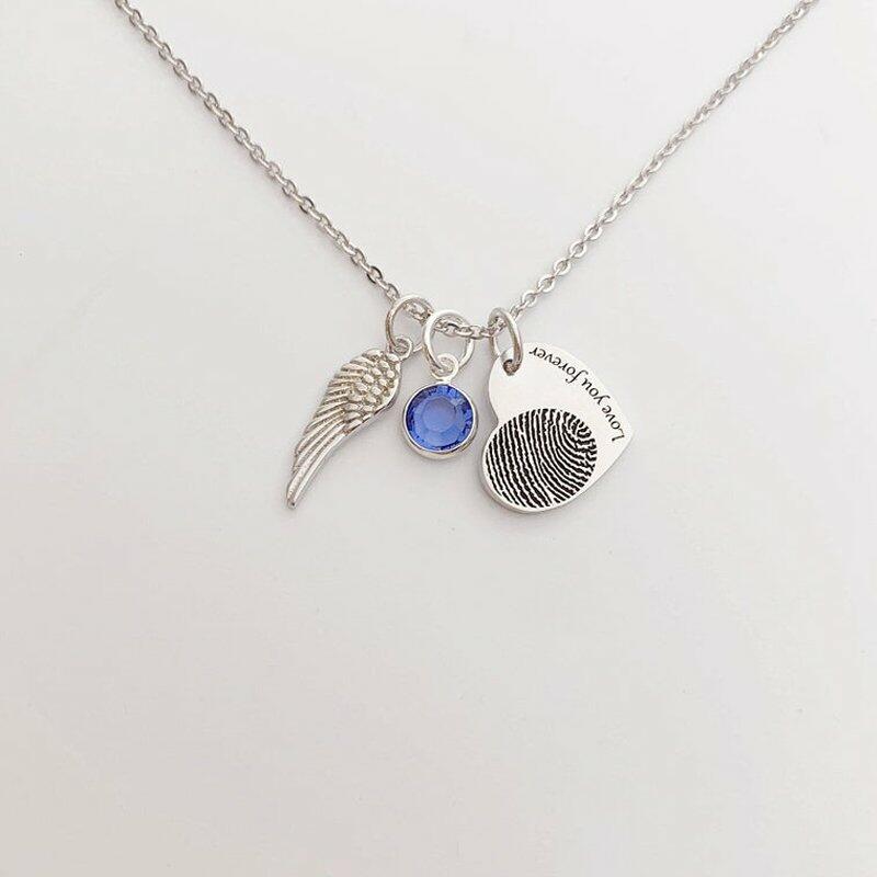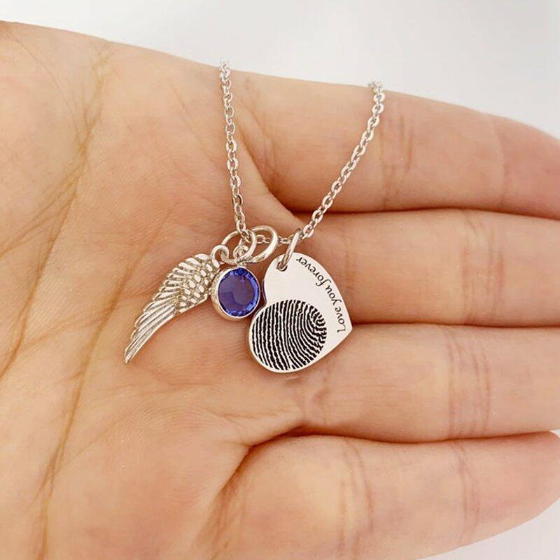 Personalised Heart Fingerprint Necklace with Birthstone& Handwriting