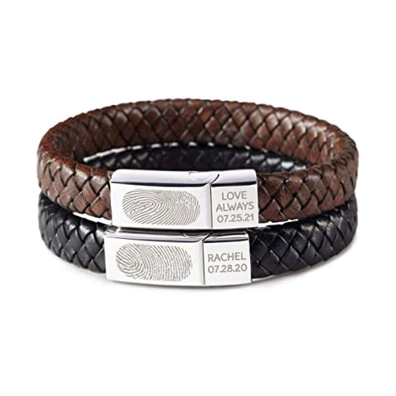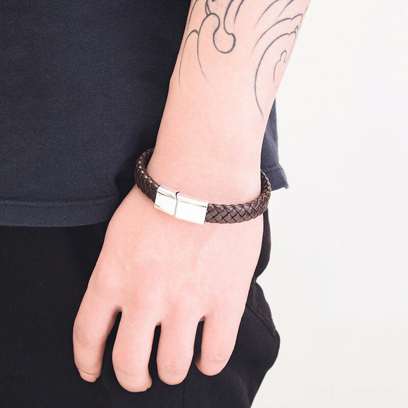 Our stunning braided leather and stainless steel bracelet for men makes a wonderful gift for boyfriends, fathers, and male friends, and is perfect for everyday wear. Excellent workmanship, high quality. Leather bracelets with stainless steel bars that can be engraved with names, sentences or photos. Men's bracelets are the perfect gift for Valentine's Day, Father's Day, Christmas and other important occasions.