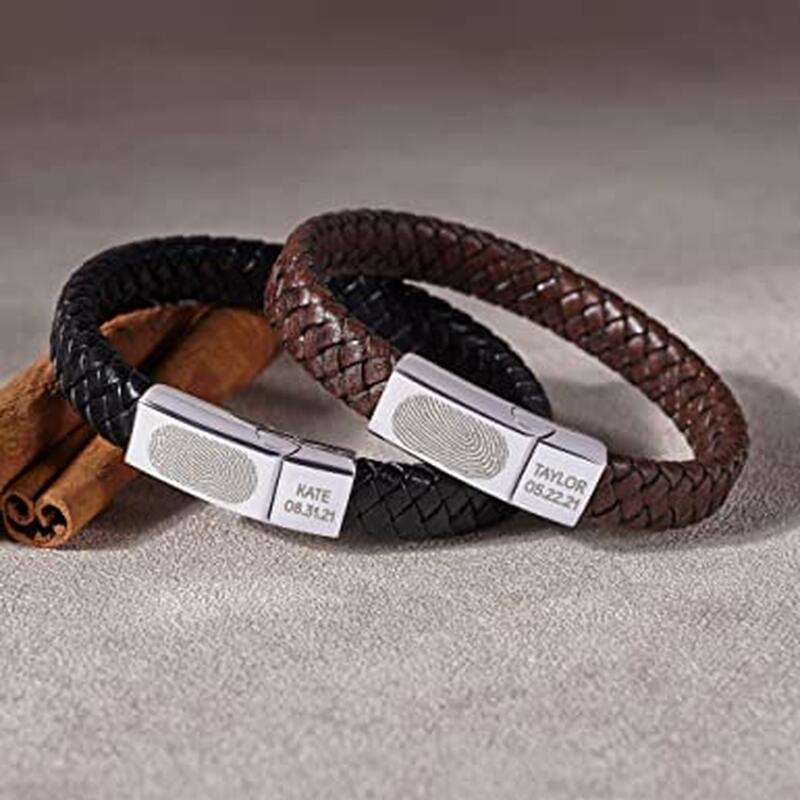 Personality Change Leather Woven Men's Bracelet Custom Fingerprint and Lettering