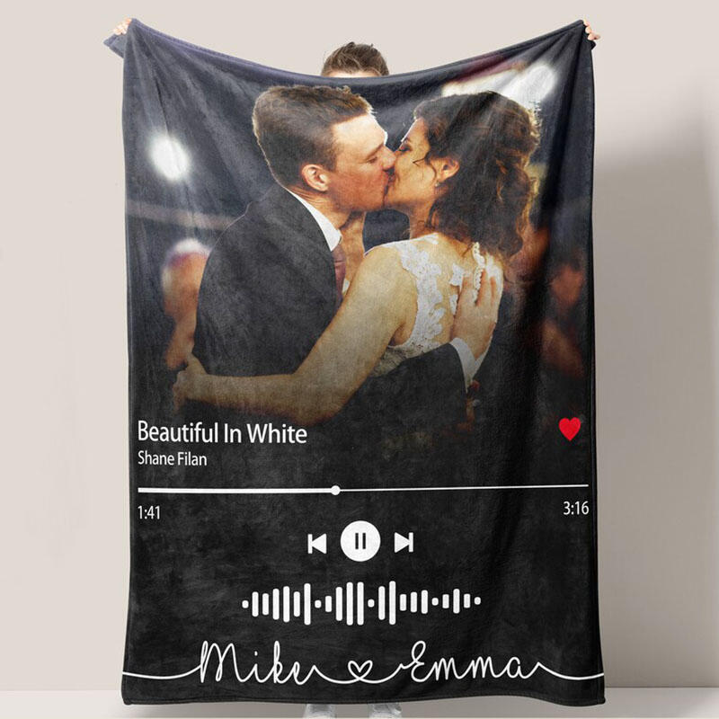 Personalized Your Favorite Song Spotify Code Photo Blanket for Couple