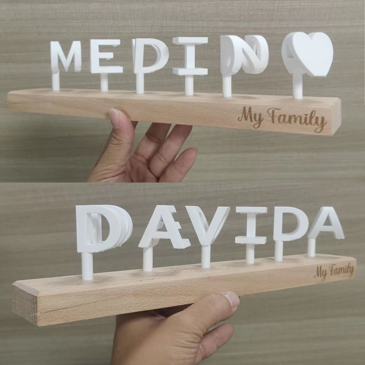 Personalized 3d Printed Double Name With Wooden Base Romantic Gift