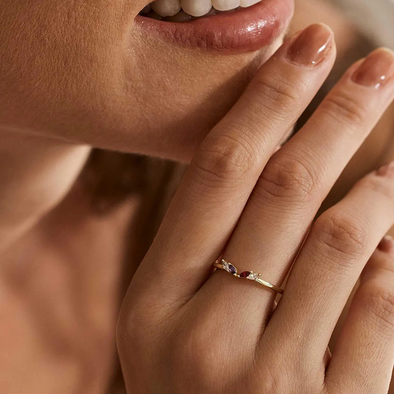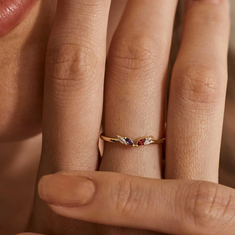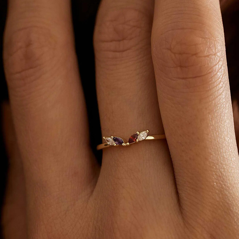 Personalized 4 Birthstones Ring Great Gift for Mom