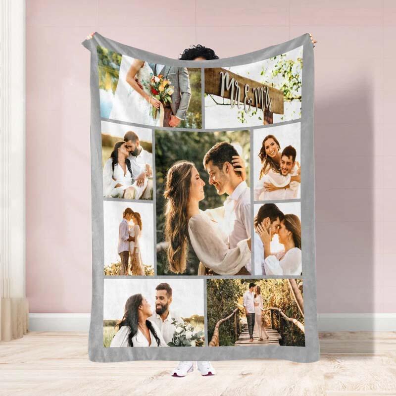 Personalized 9 Photos Collage Blanket for Sweet Couple
