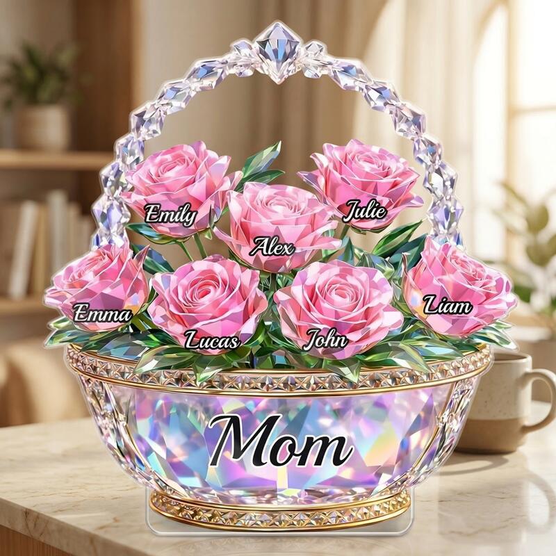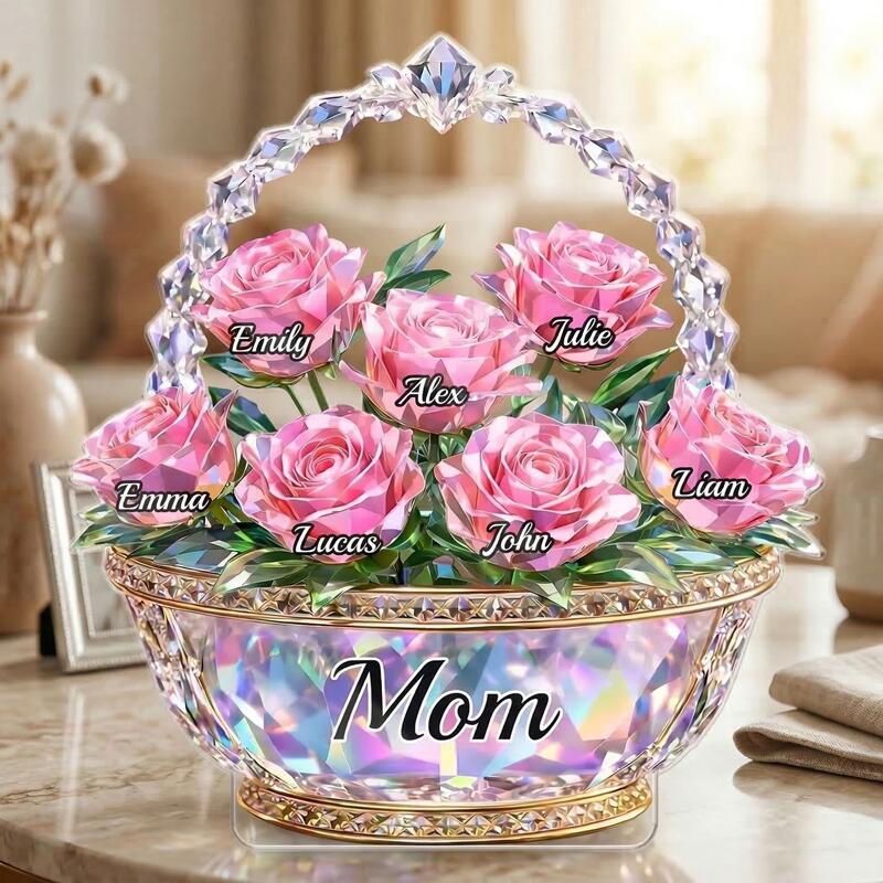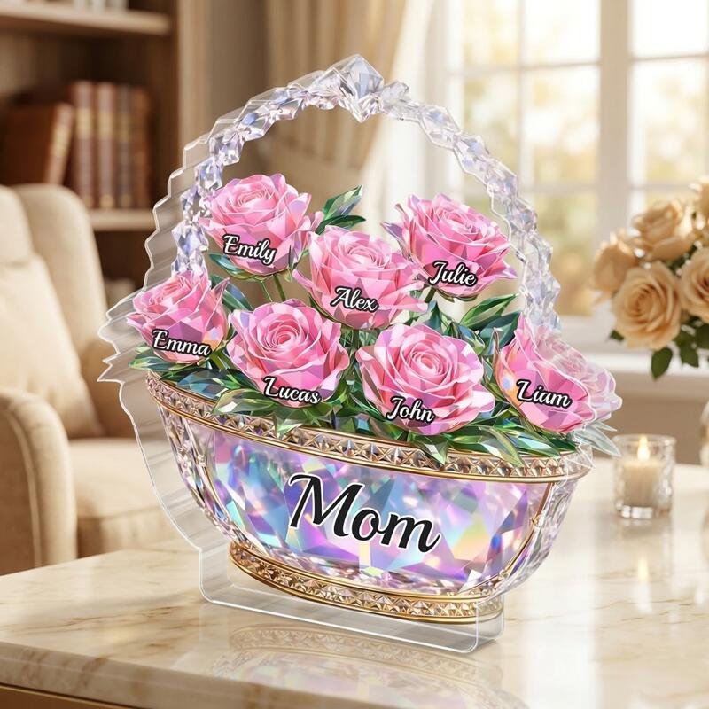 Personalized Acrylic Block Plaque Custom Names Shiny Flower Basket Design Gift for Mother's Day