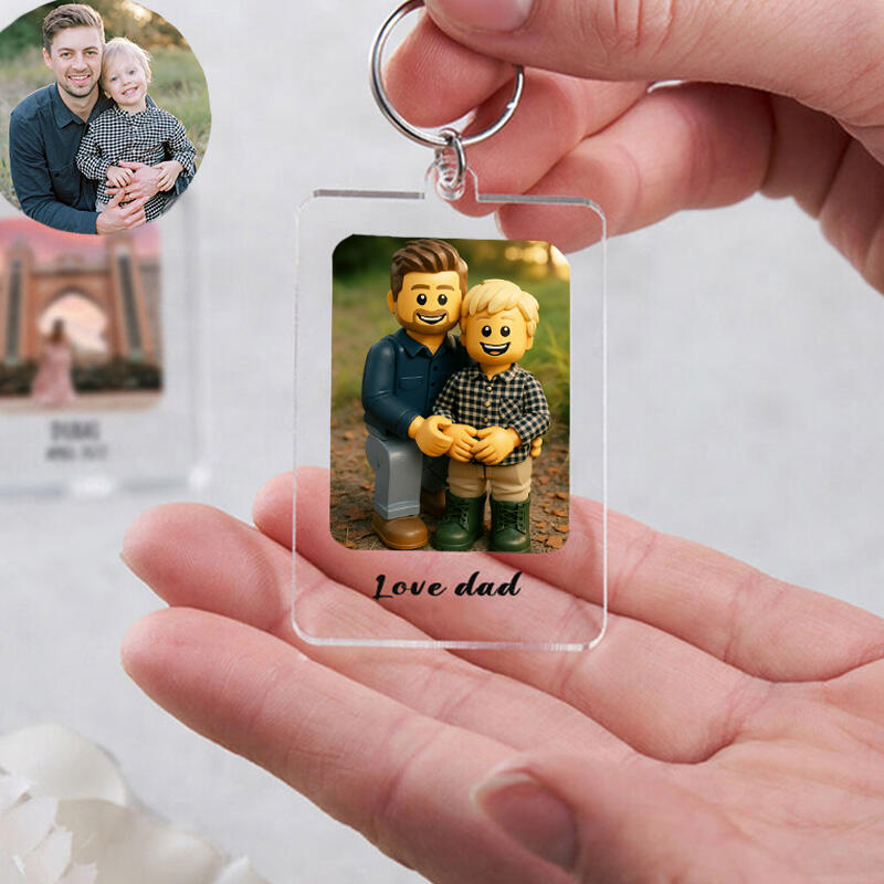 Personalized Acrylic Cartoon Style Photo Keychain Gift for Dad