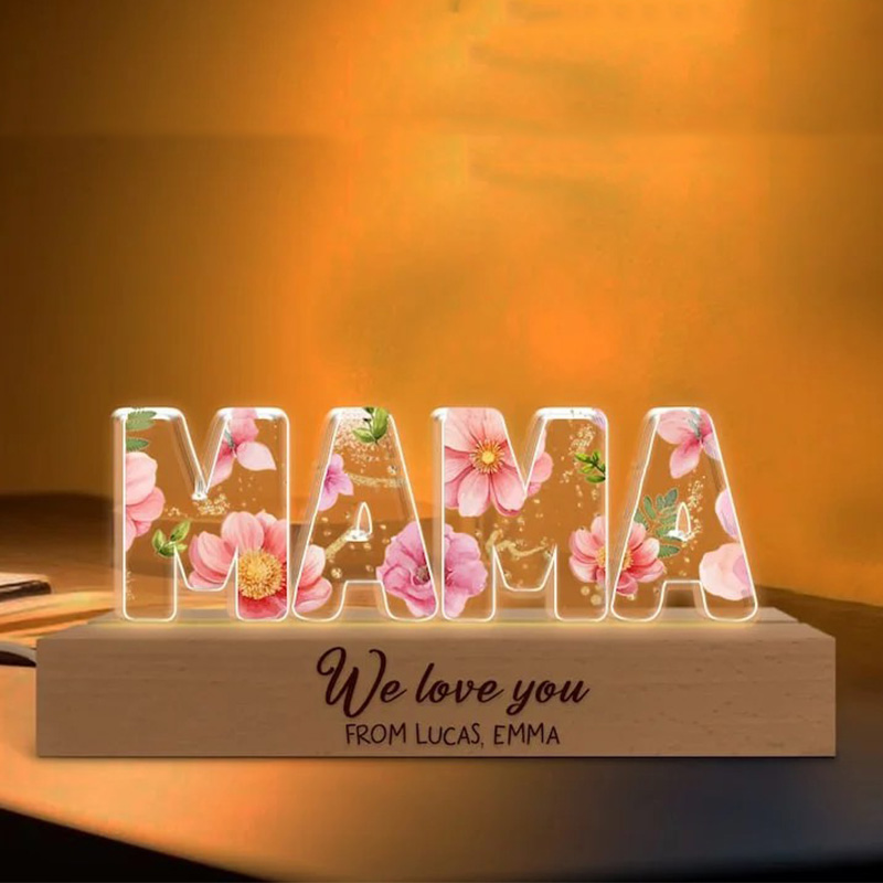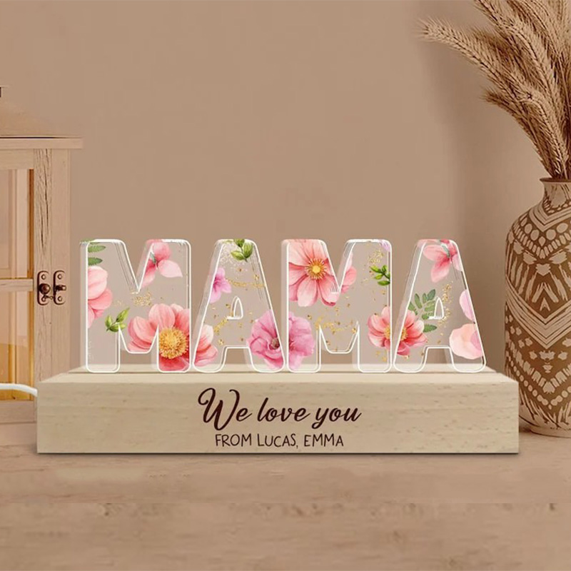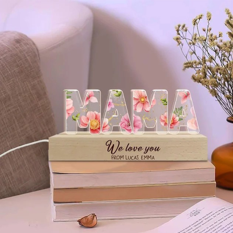 Personalized Acrylic Letter Lamp With Beautiful Flowers Mother's Day Gift