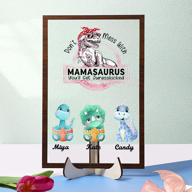 Personalized Acrylic Photo Frame With Cute Dinosaur Pattern Mother's Day Gift