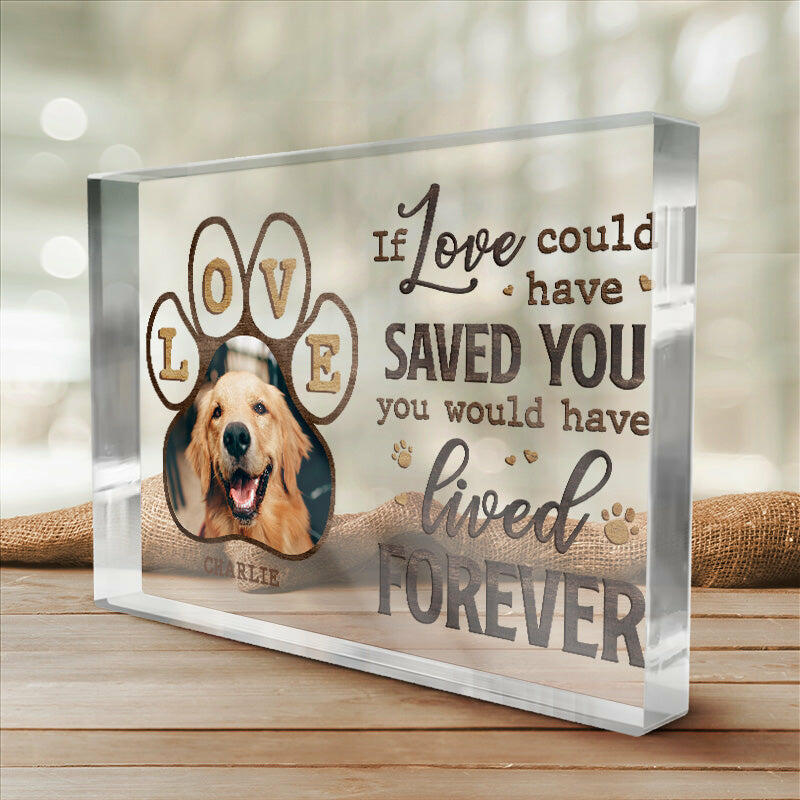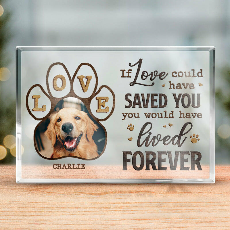 Personalized Acrylic Photo Plaque If Love Could Have Saved You with Paw Design Memorial Gift for Pet Lover