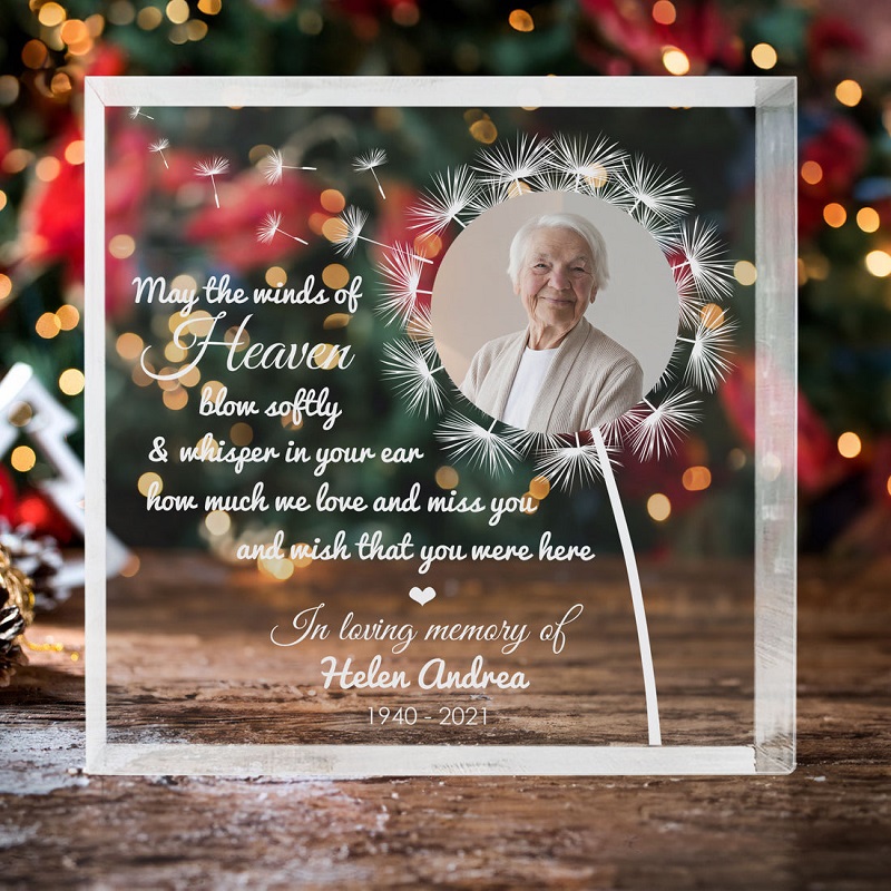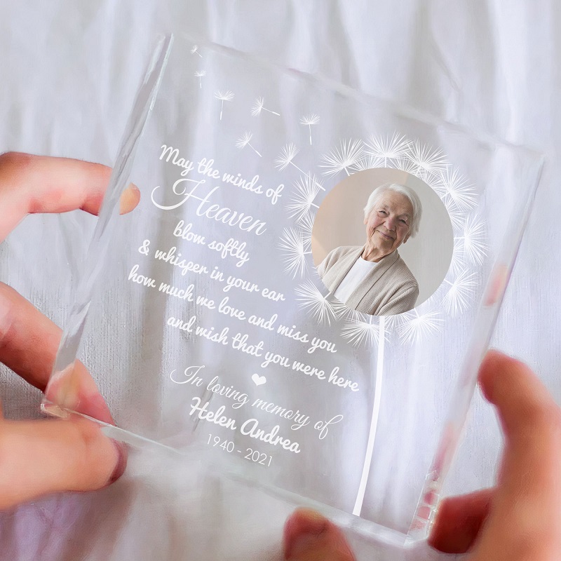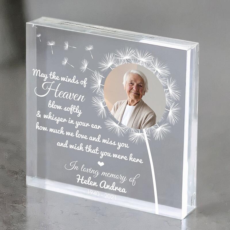 Personalized Acrylic Photo Plaque The Winds Of Heaven Blow Softly Memorial Gift for Parents