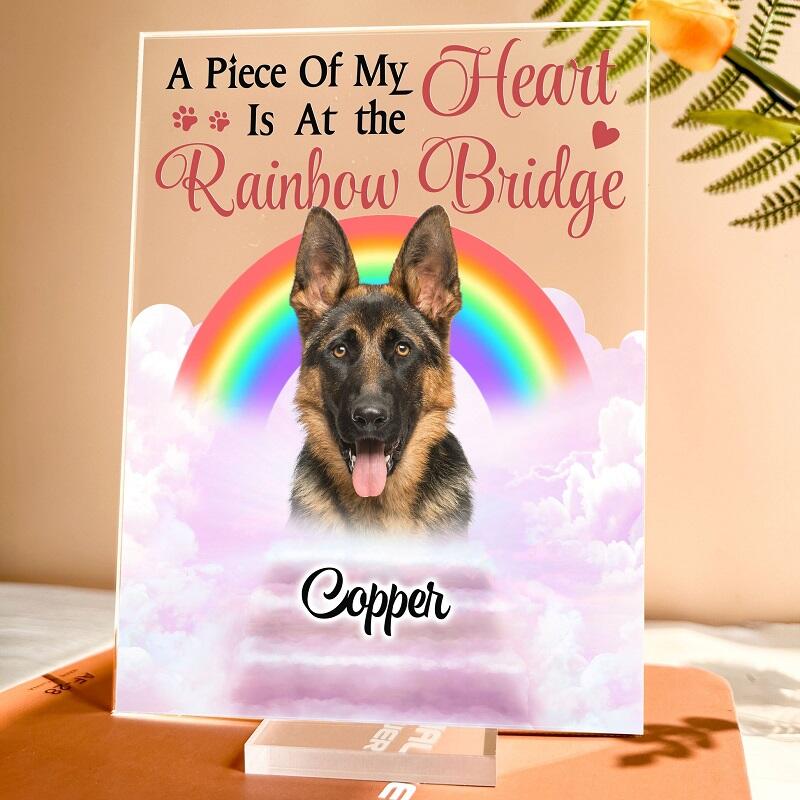 Personalized Acrylic Plaque A Piece of My Heart Is At The Rainbow Bridge Memorial Gift for Pet Lovers