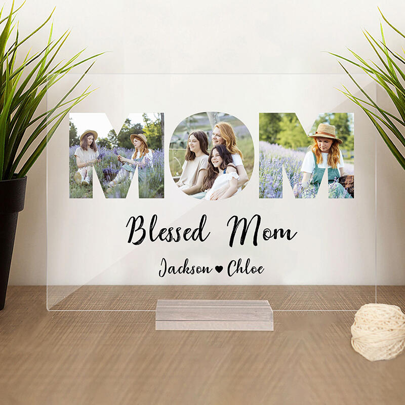 Personalized Acrylic Plaque Best Mom Ever with Custom MOM Shape Photos Design Perfect Gift for Mother's Day