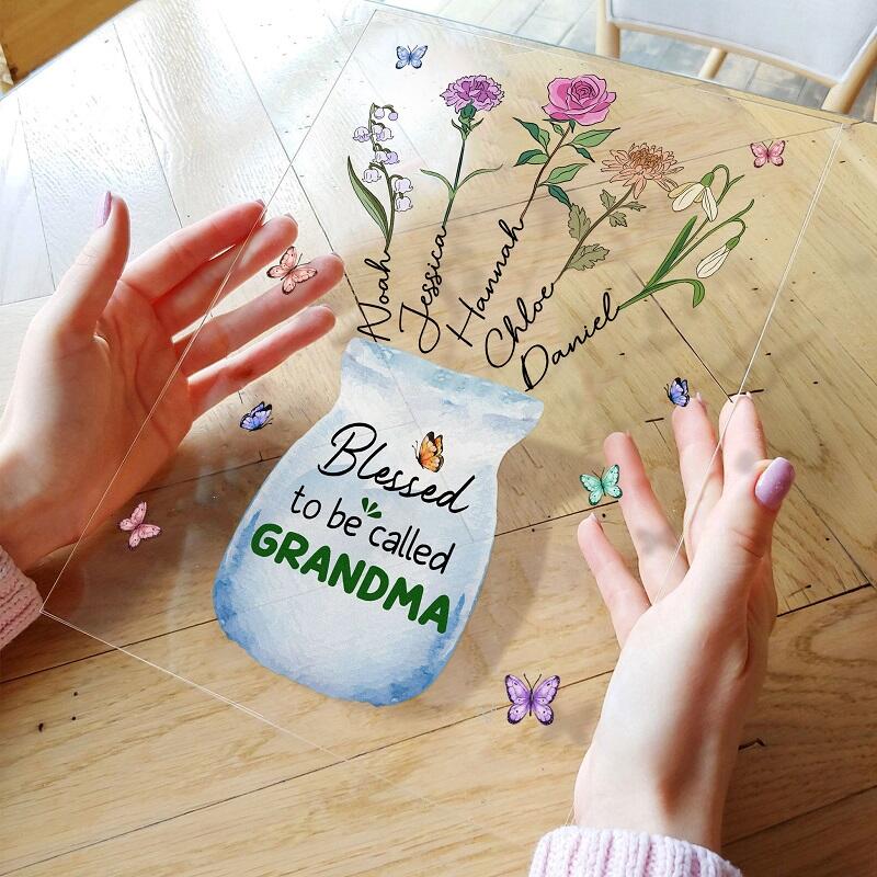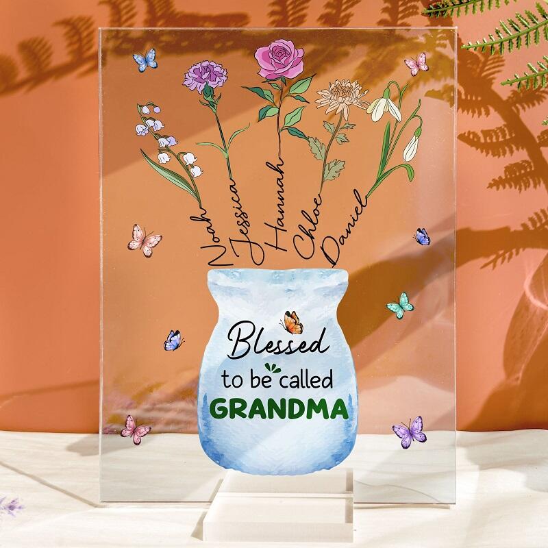 Personalized Acrylic Plaque Blessed To Be Called with Custom Birth Flowers Warm Gift for Family