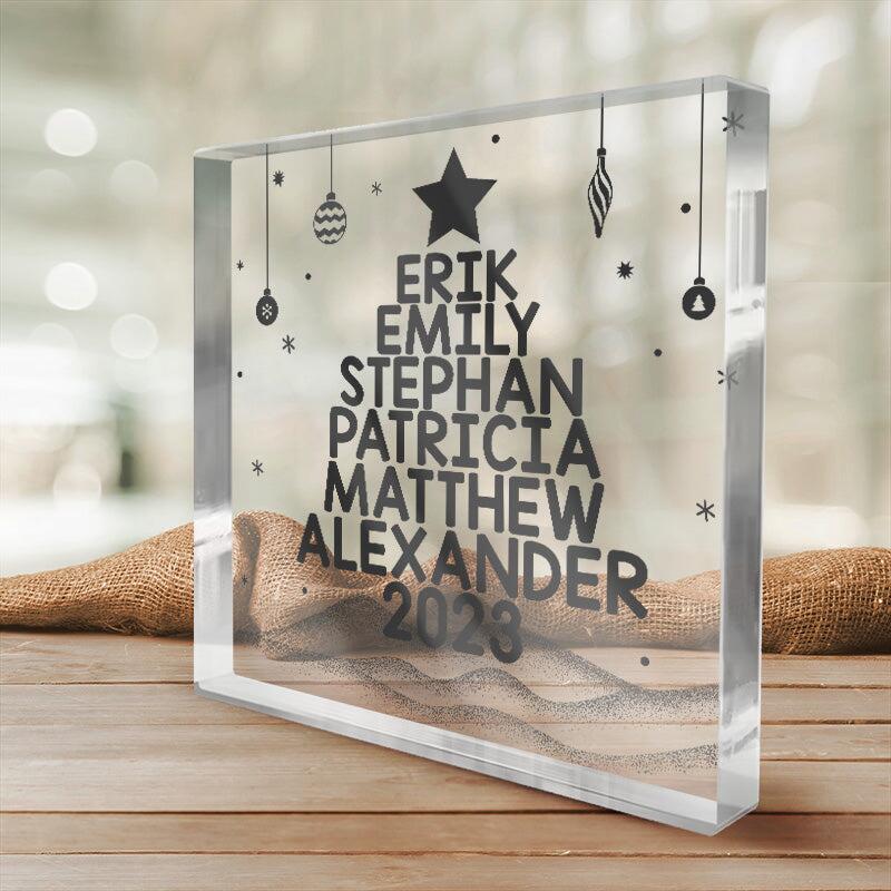 Personalized Acrylic Plaque Custom Family Names Christmas Tree Shape Design Attractive Gift for Loved One