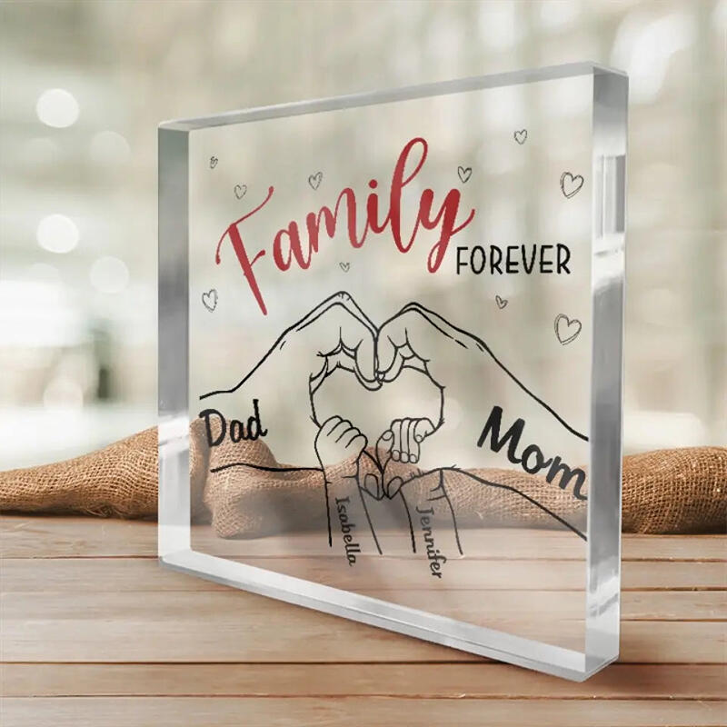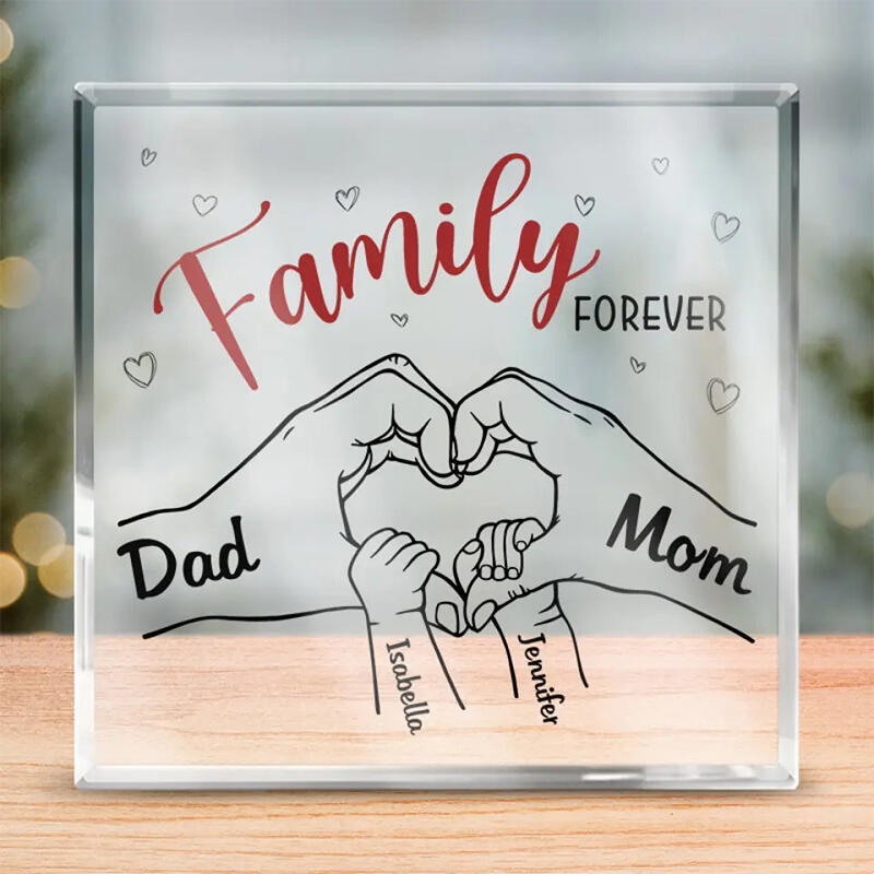 Personalized Acrylic Plaque Family Forever Hand Heart Custom Kids Design Perfect Gift for Parents