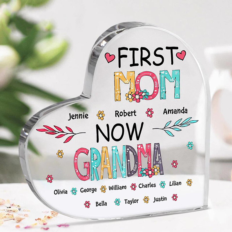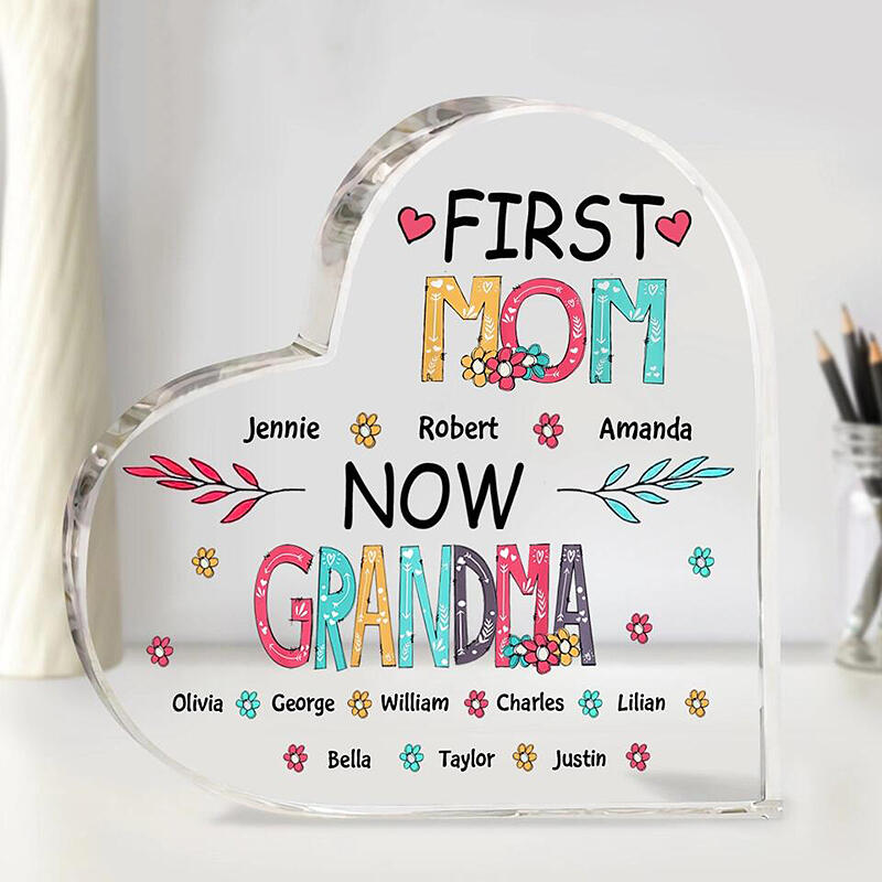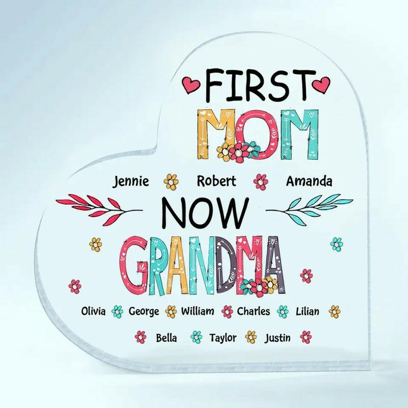 Personalized Acrylic Plaque First Mom Now Grandma with Colorful Flower Name Design Perfect Gift for Mother's Day