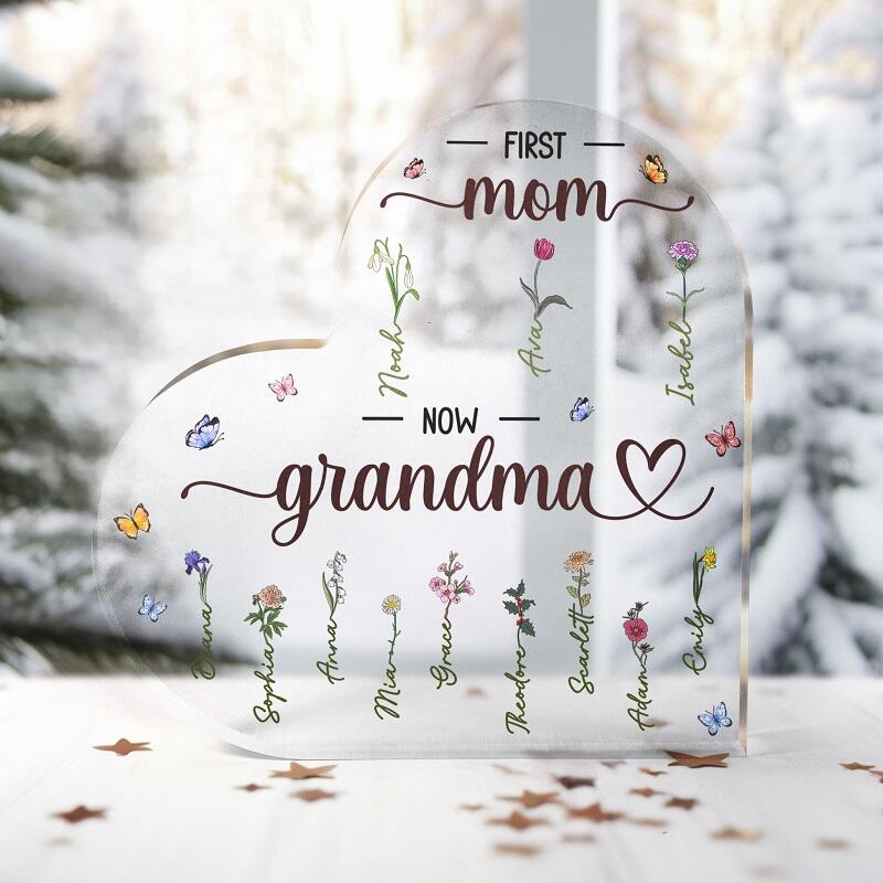 Personalized Acrylic Plaque First Mom Now Grandma with Custom Flower Name Great Gift for Mother's Day