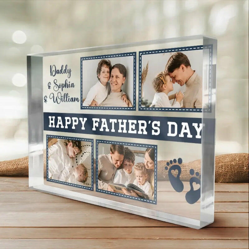 Personalized Acrylic Plaque Happy Father's Day with Custom Photos Design Warm Gift for Dear Dad