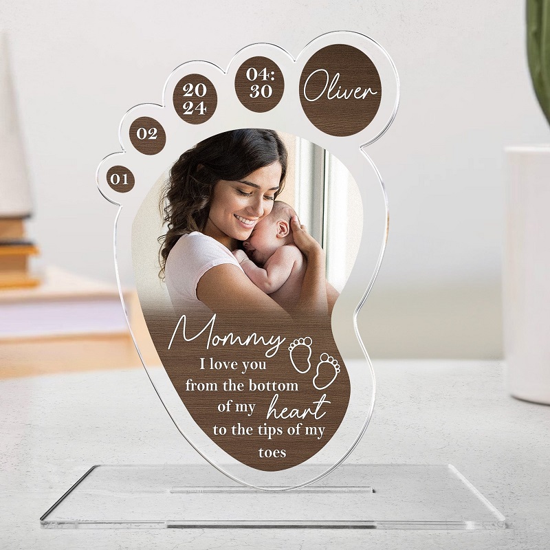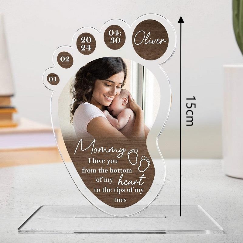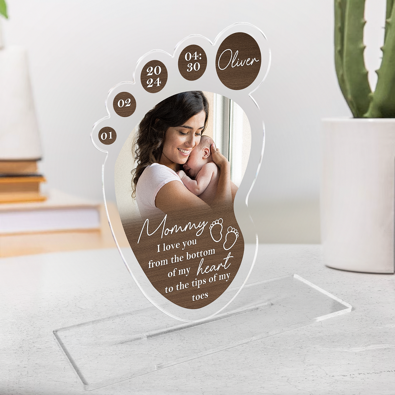 Personalized Acrylic Plaque I Love You From The Bottom of My Heart Foot Design Perfect Gift for Mom
