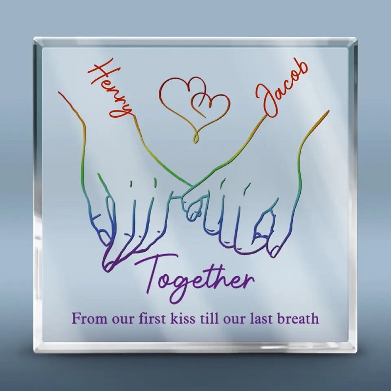 Personalized Acrylic Plaque Love Freely Hold Your Hand Rainbow Design Attractive Gift for LGBT Lover