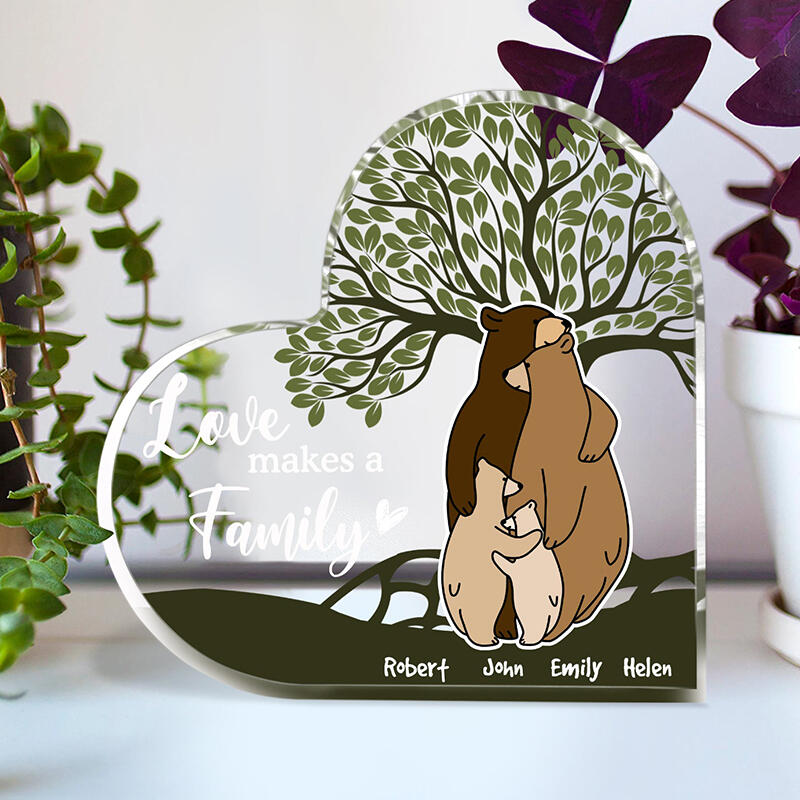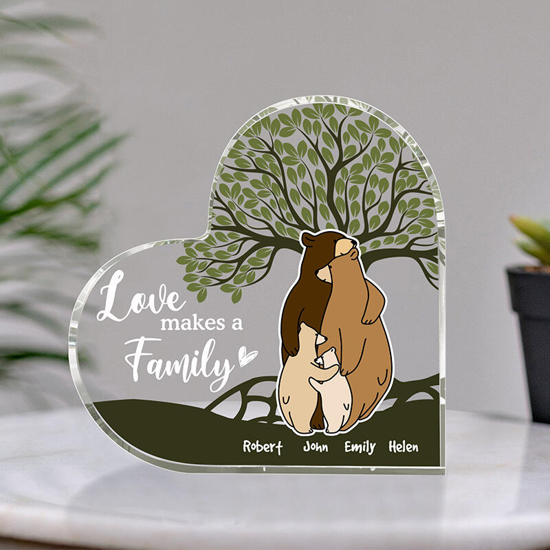 Personalized Acrylic Plaque Love Makes A Family with Custom Bear Adorable Gift for Mother's Day