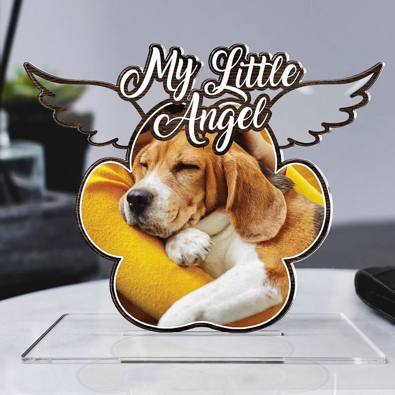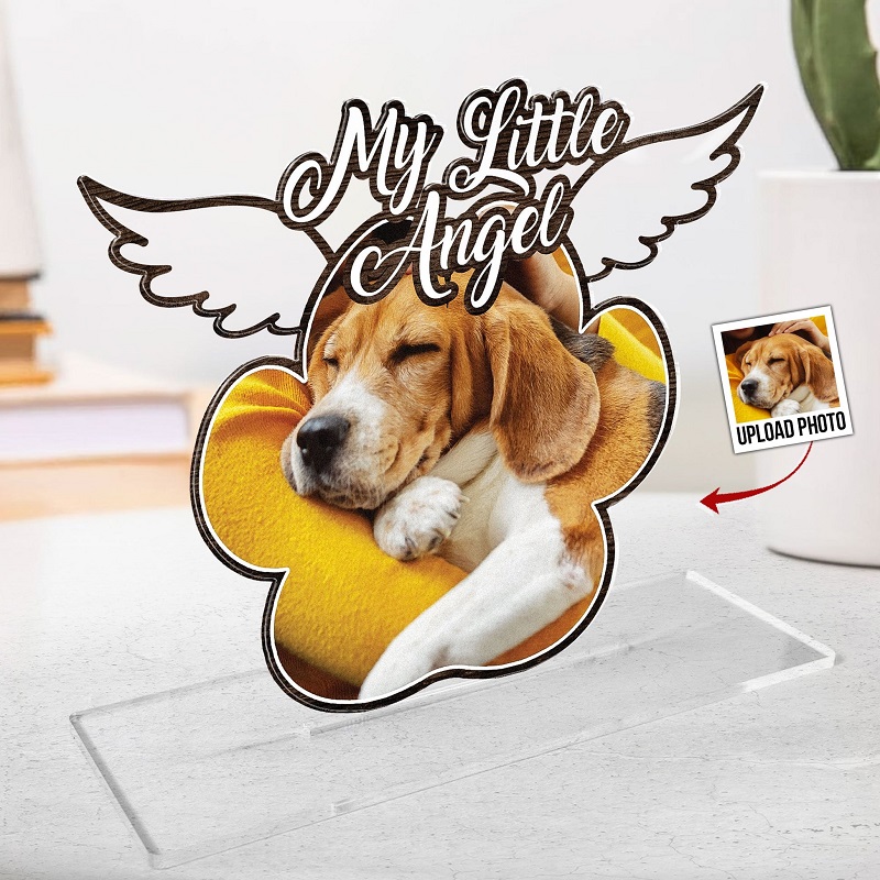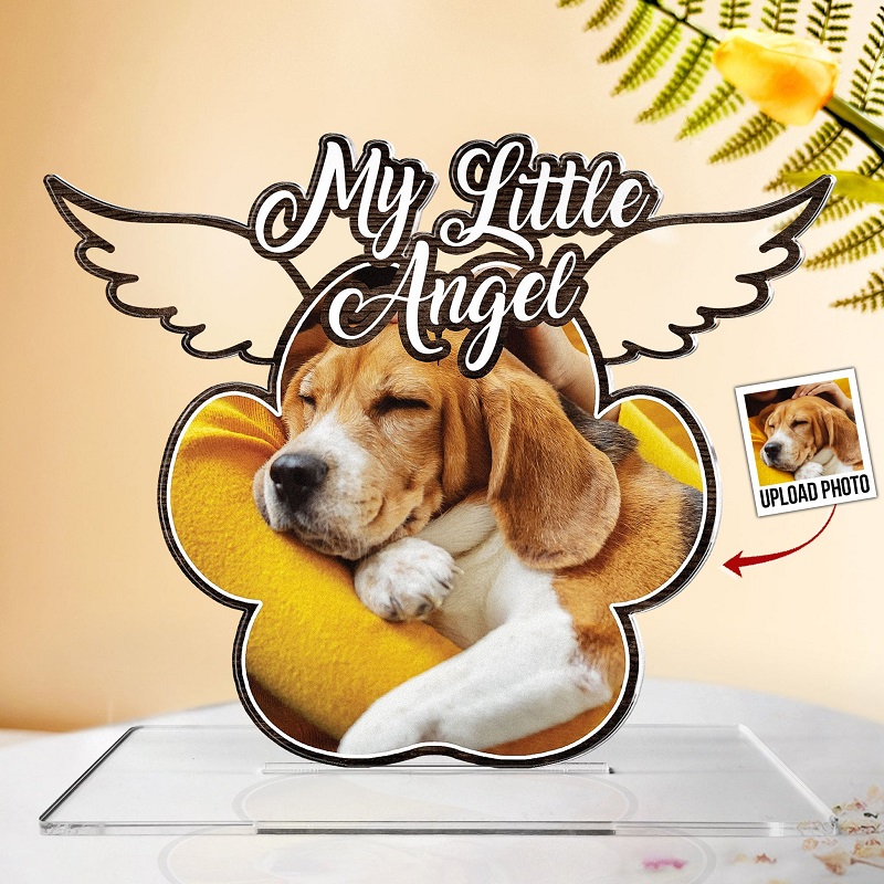 Personalized Acrylic Plaque My Little Angel Custom Photo Wings Design Memorial Gift for Pet Lovers