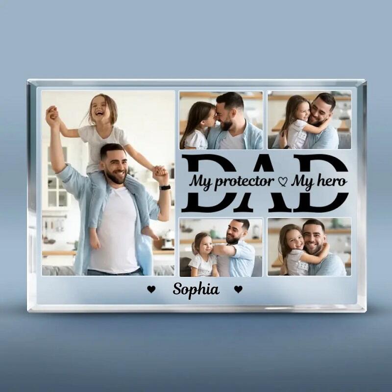 Personalized Acrylic Plaque My Protector My Hero with Custom Photos Great Gift for Father's Day