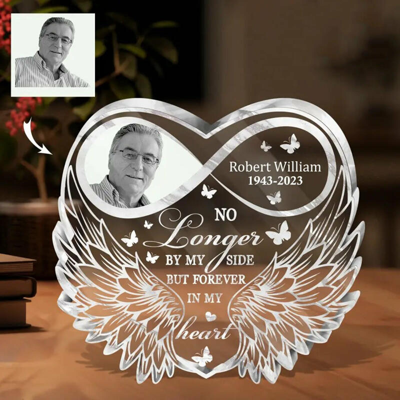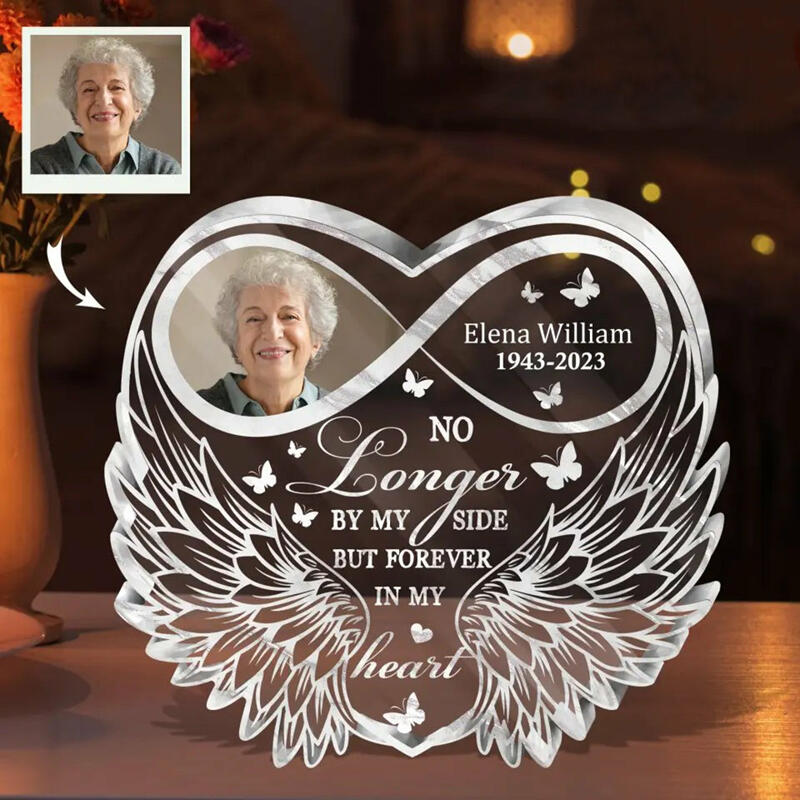 Personalized Acrylic Plaque No Longer By My Side Forever In My Heart Angel Wings Design Memorial Gift for Loved One