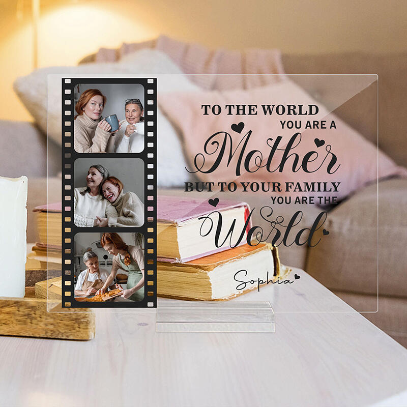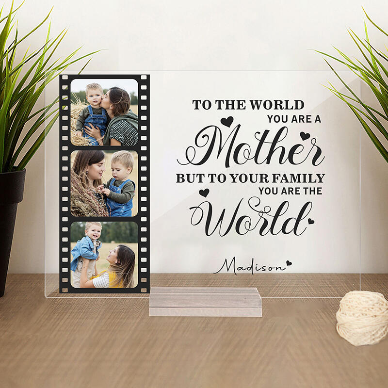 Personalized Acrylic Plaque To Your Family You Are The World with Film Style Custom Photos Unique Gift for Mother's Day