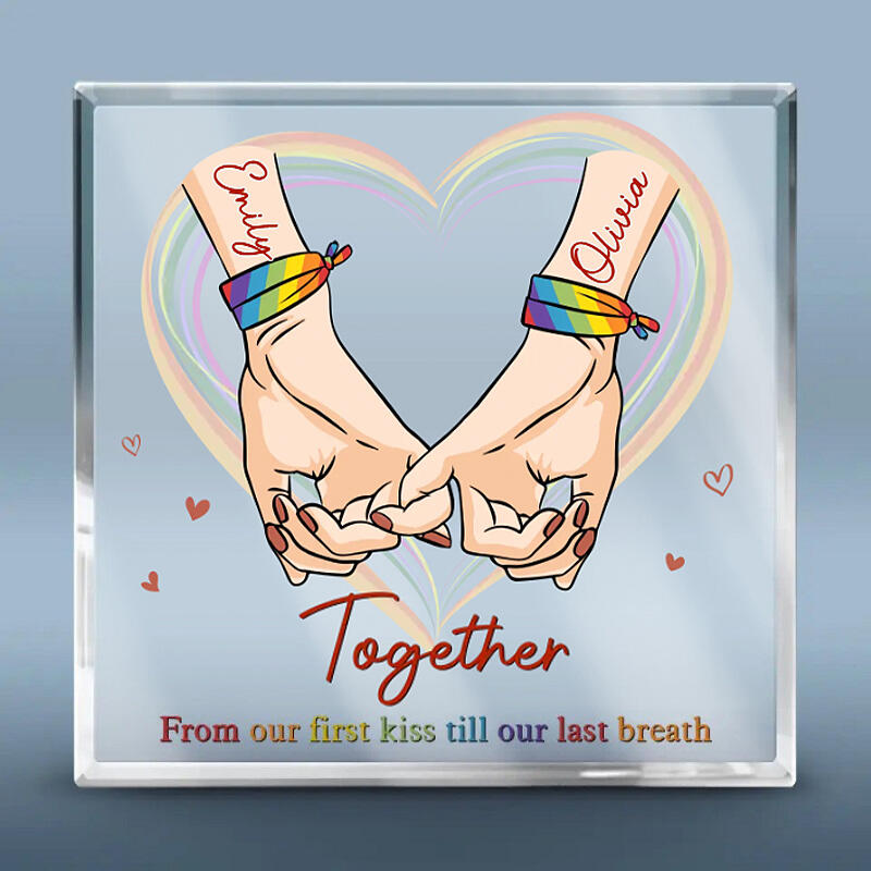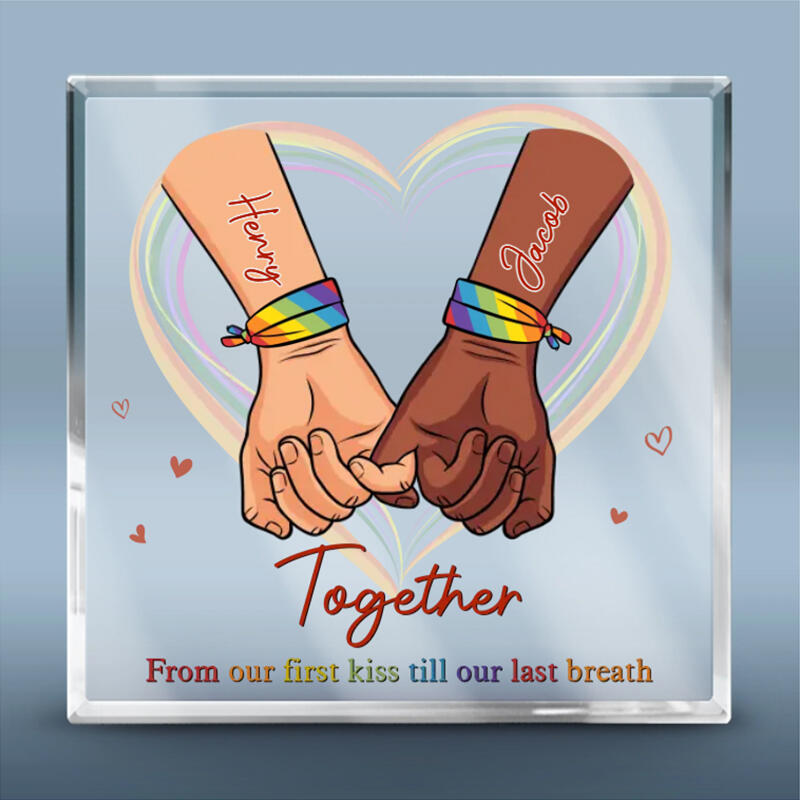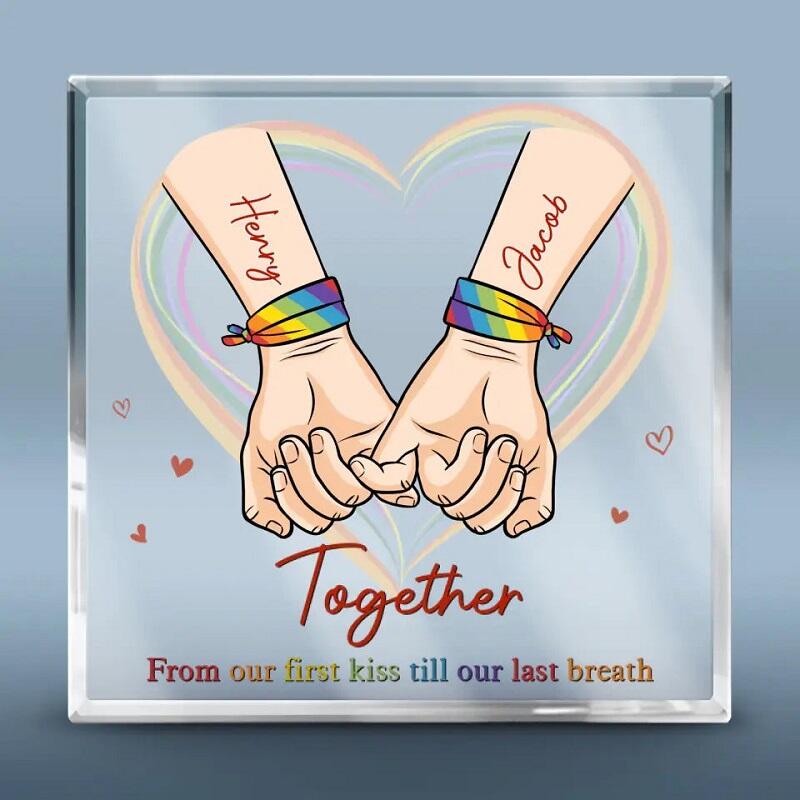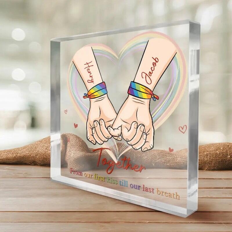 Personalized Acrylic Plaque Together Hold Your Hand Rainbow Bracelet Design Perfect Gift for LGBT Lover