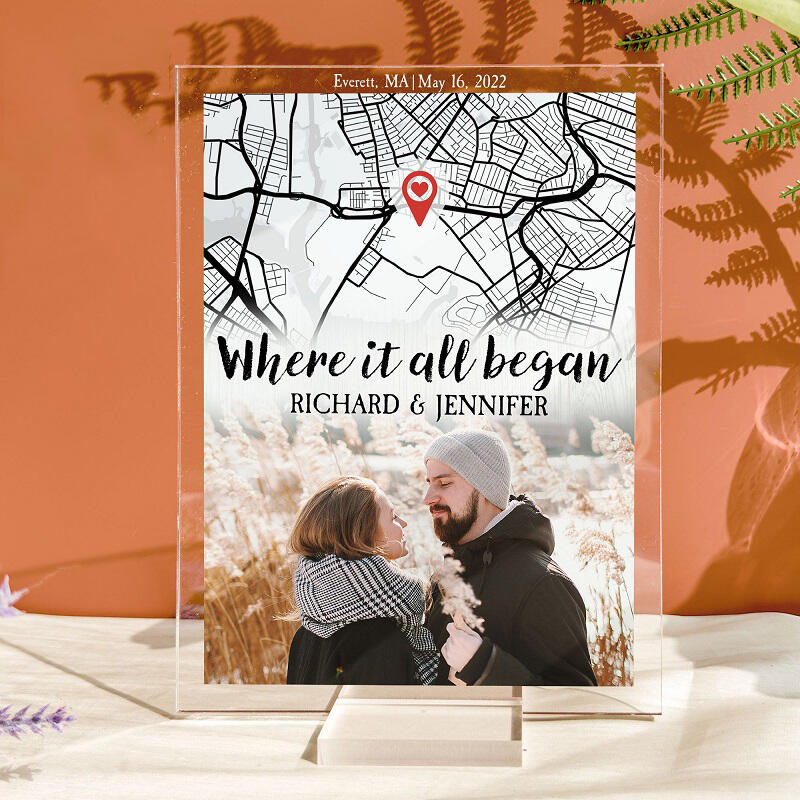 Personalized Acrylic Plaque Where It All Began Custom Special Location Map Unique Gift for Lovers