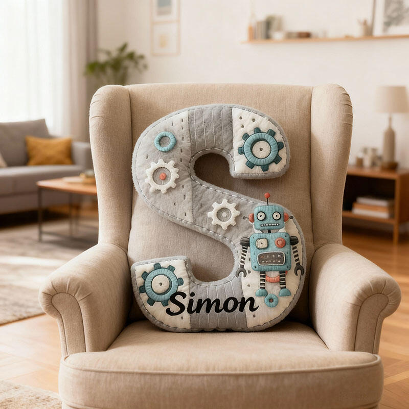 Personalized Alphabet Shaped Pillow with Mechanical Pattern Cool Gift for Boys