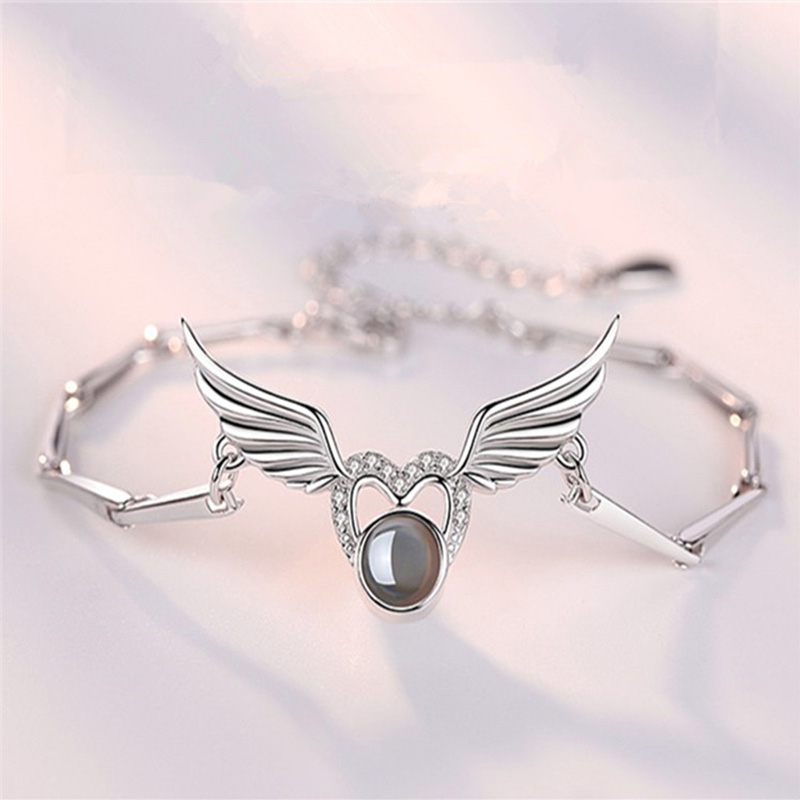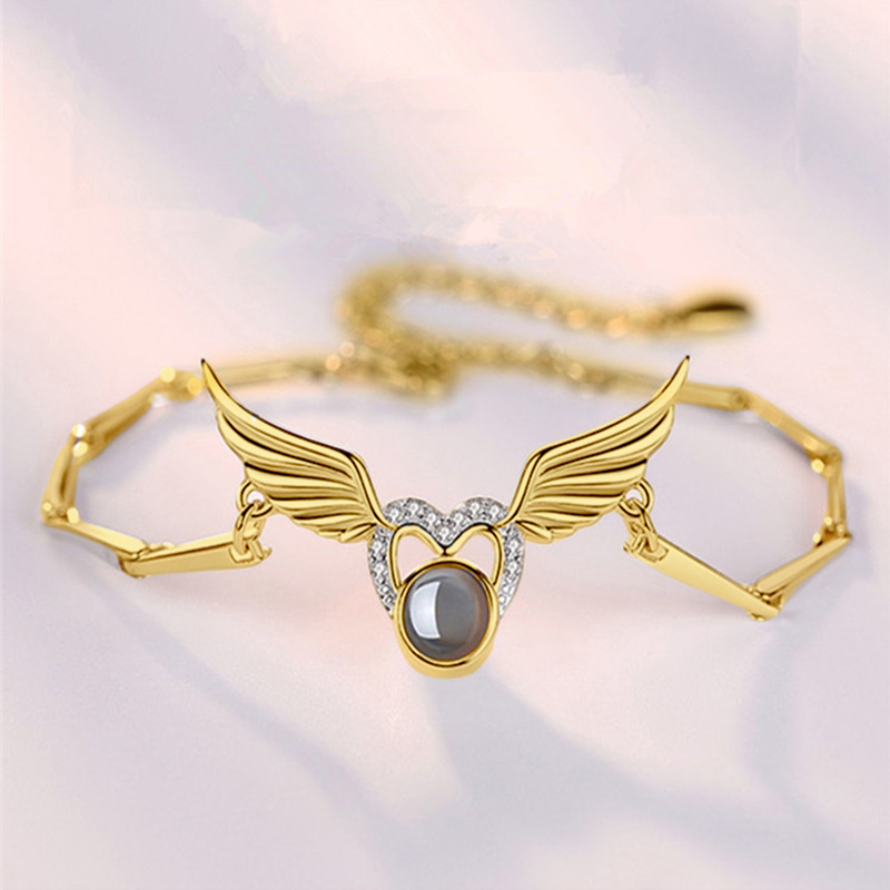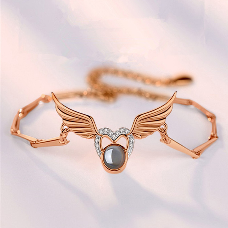Personalized Angel Wings Photo Projection Bracelet with Diamonds