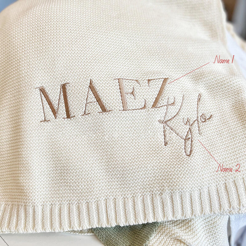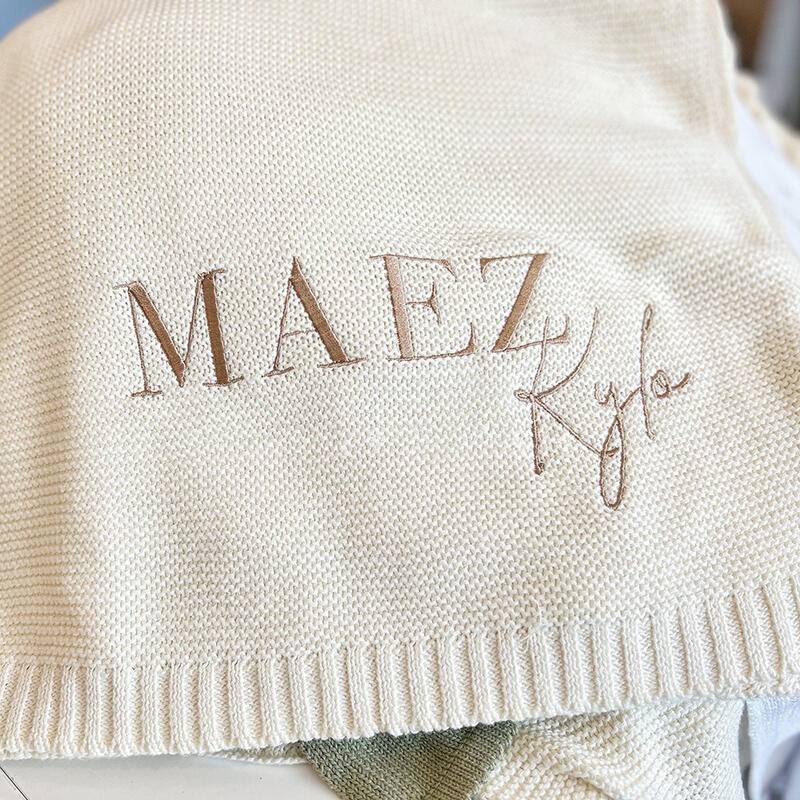 Personalized Baby Knitted Blanket with Embroidered Name Simple Gift for Kid