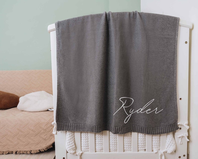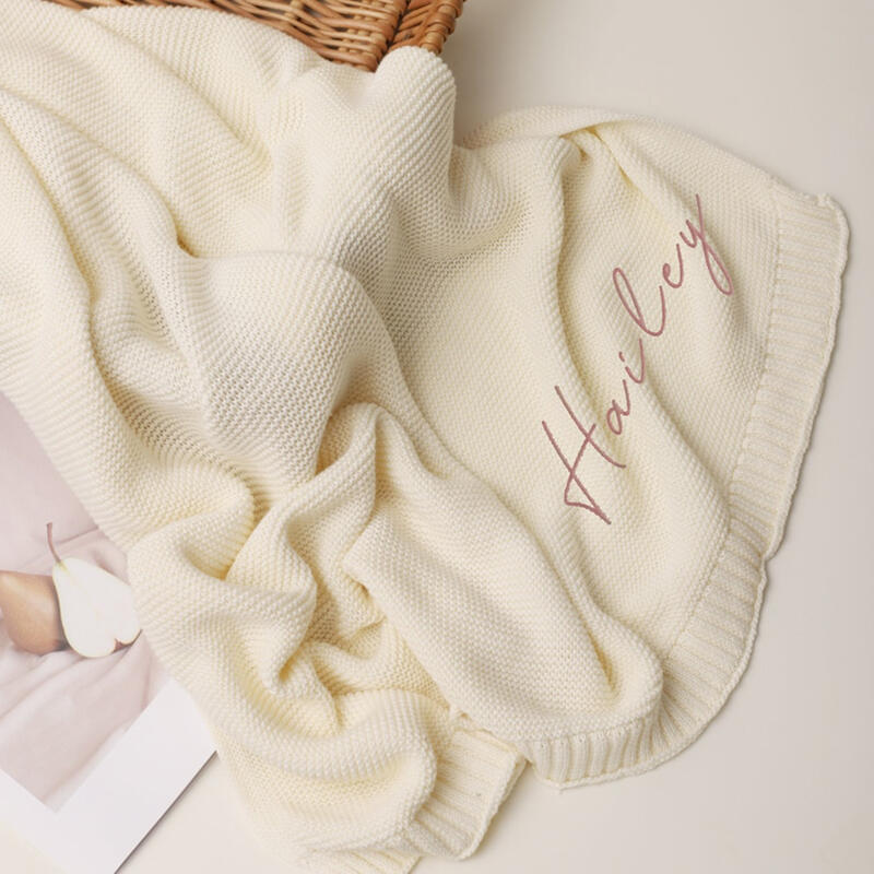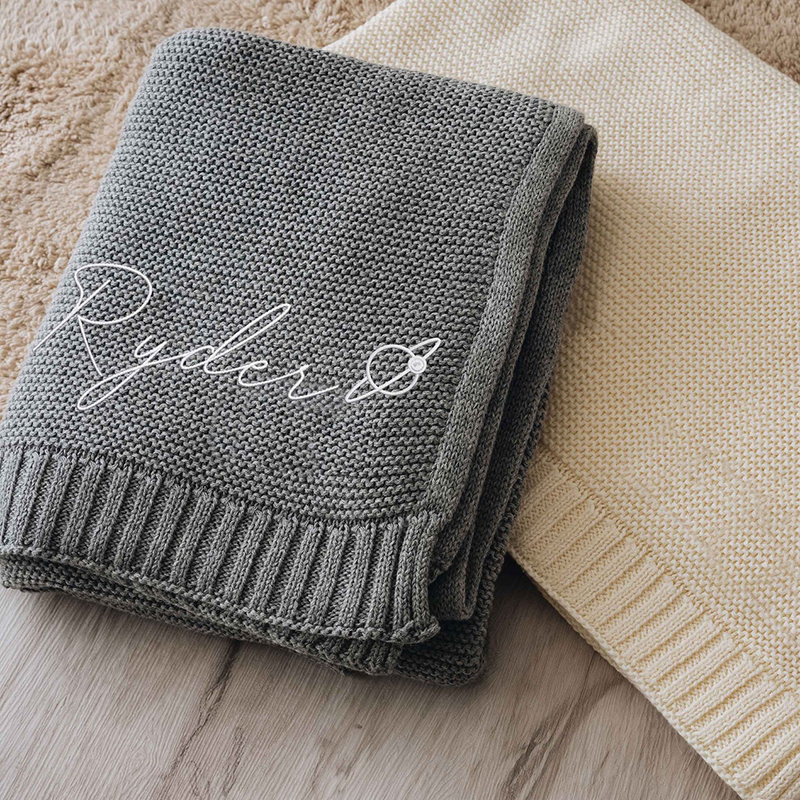 Personalized Baby Knitted Blanket with Embroidered Name Special Gift for Newborn